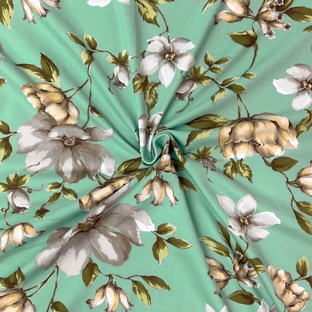 Teal-Multi Poly Spandex Stretch Floral Print DB Jersey Knit Fabric