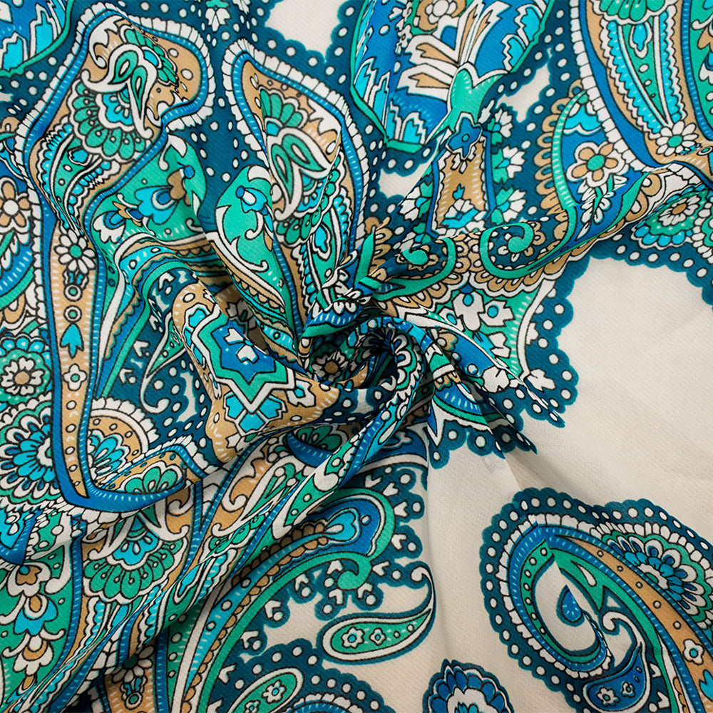 Turquoise-Multi Poly Paisley Baroque Printed Chiffon Woven Fabric