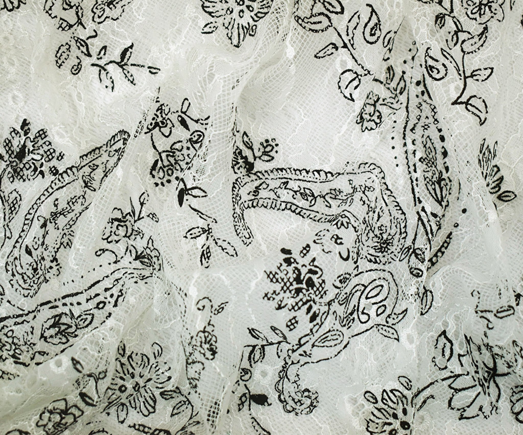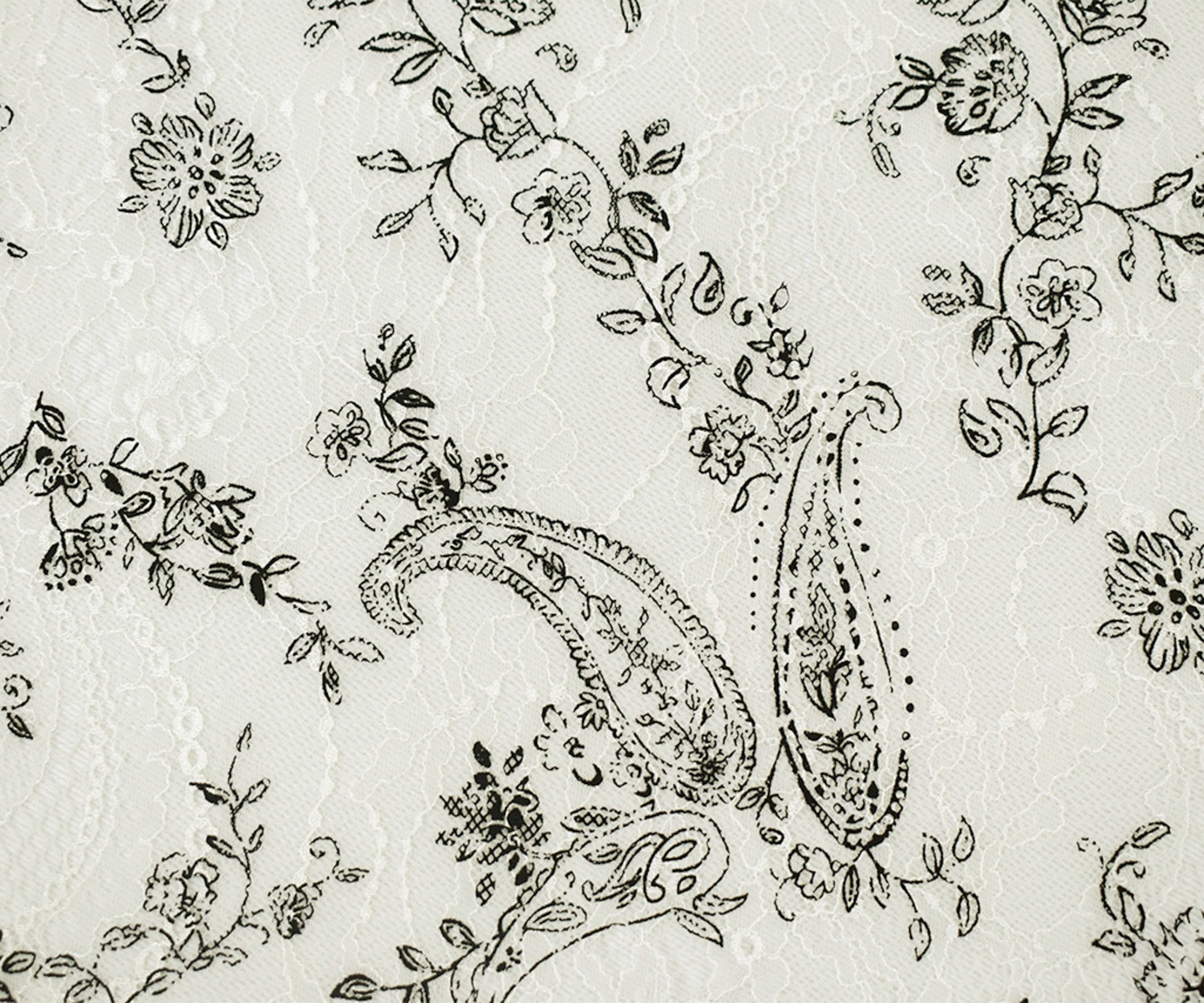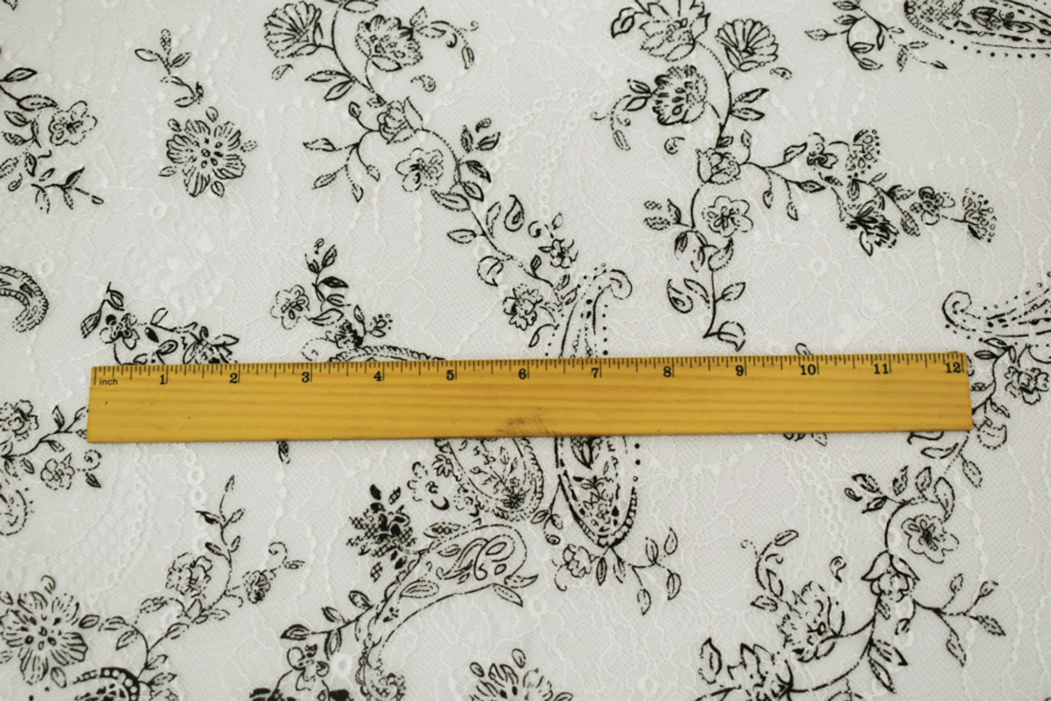White-Black Nylon Floral Paisley Printed Lace Mesh Knit Fabric