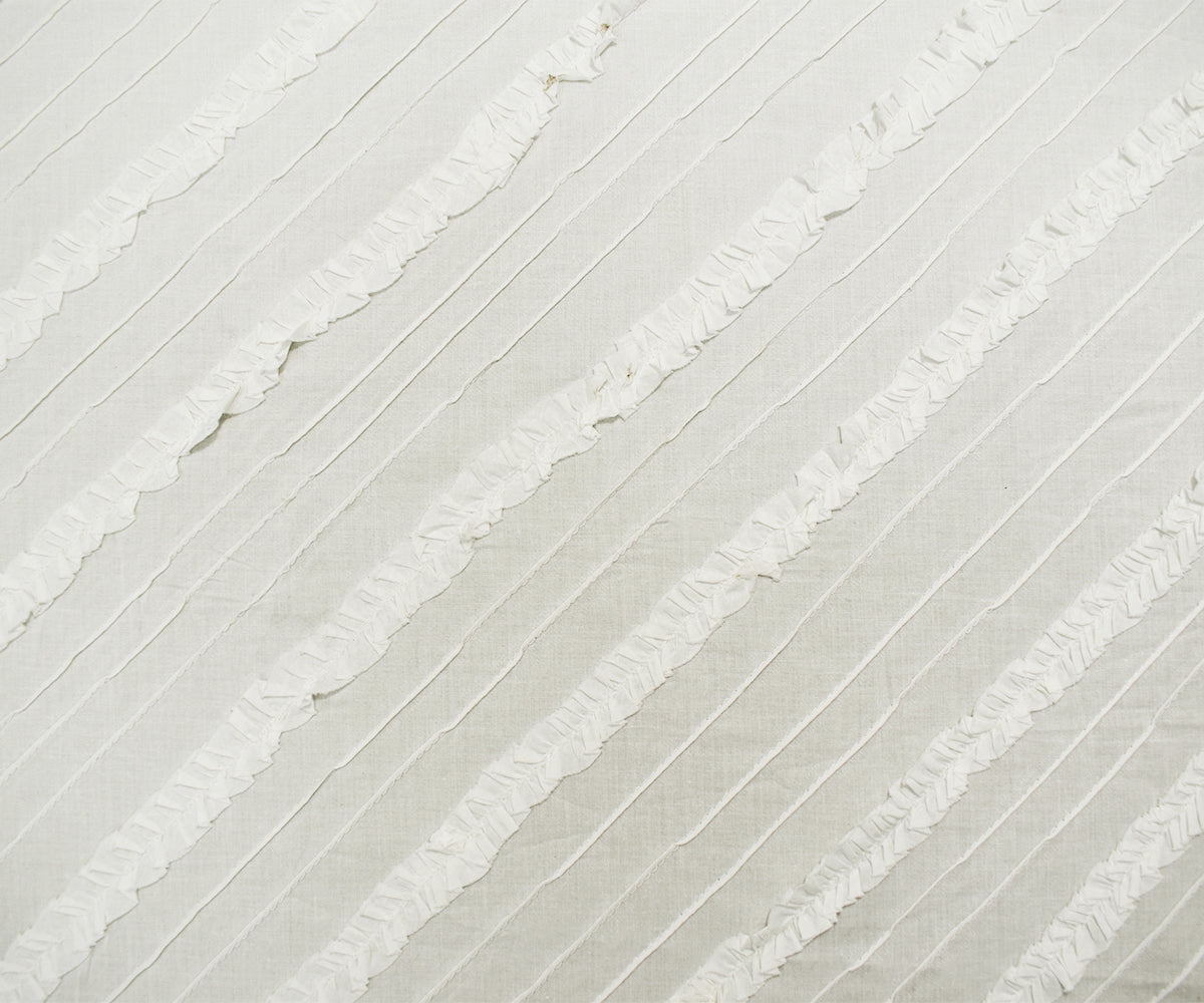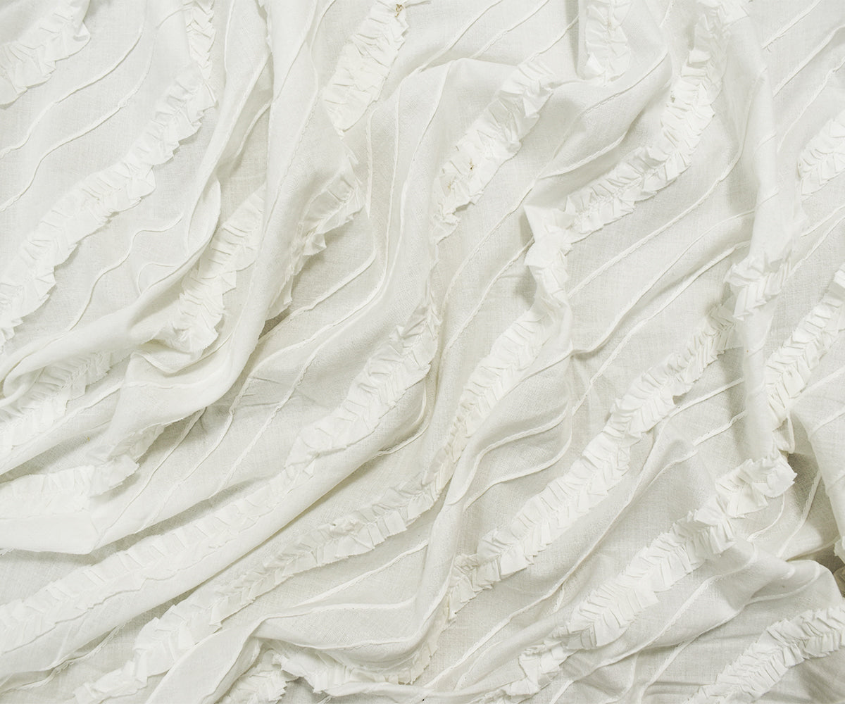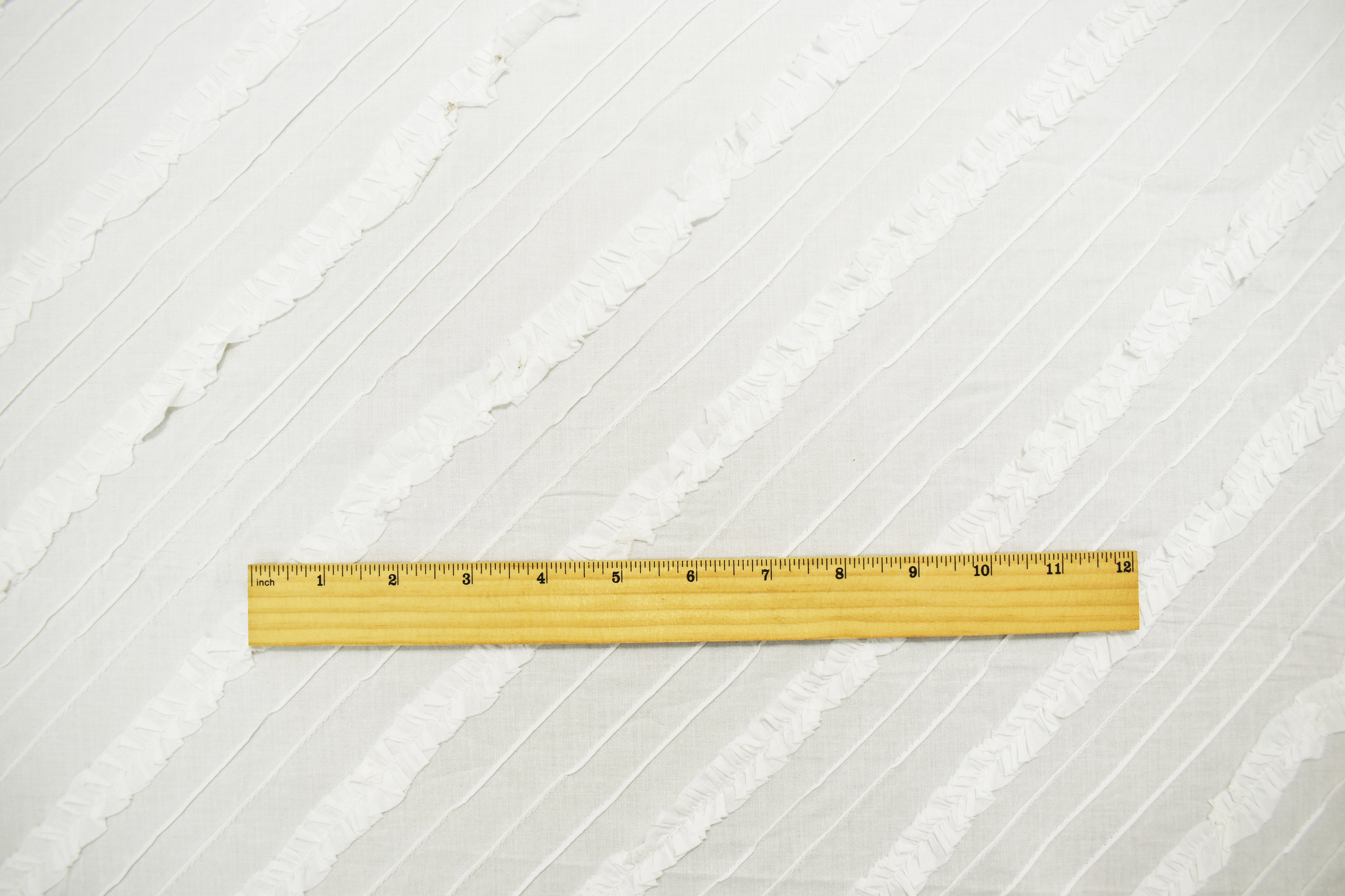 White Cotton Ruffle Pin-Tuck Diagonal Striped Voile Woven Fabric