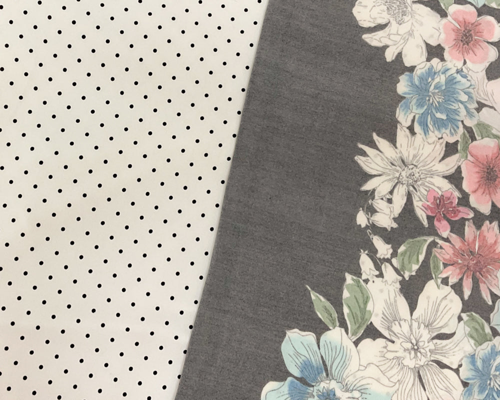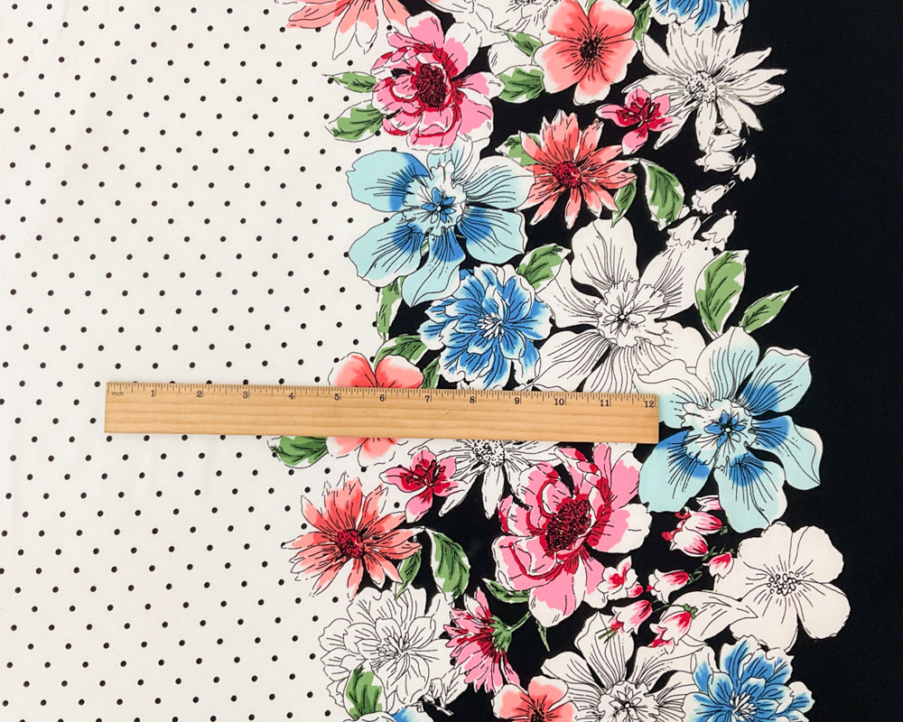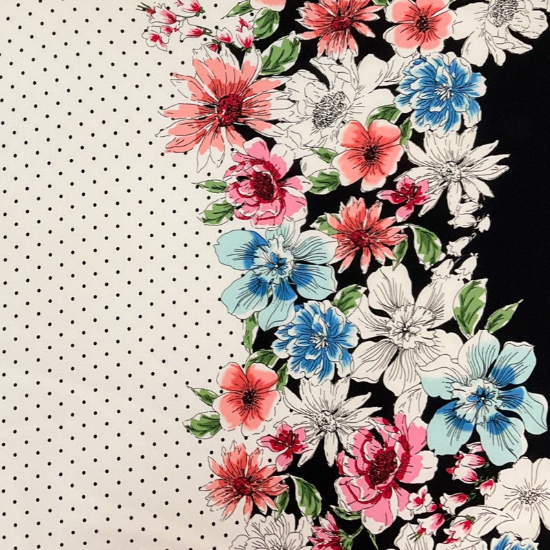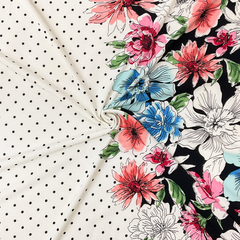 White-Multi Poly Stretch Spandex Dot Floral Border Print ITY Knit Fabric