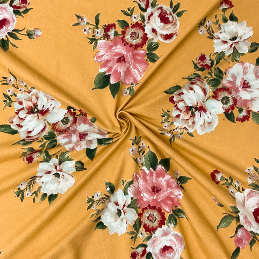 Yellow-Multi Poly Stretch Spandex Floral Print DB Jersey Knit Fabric
