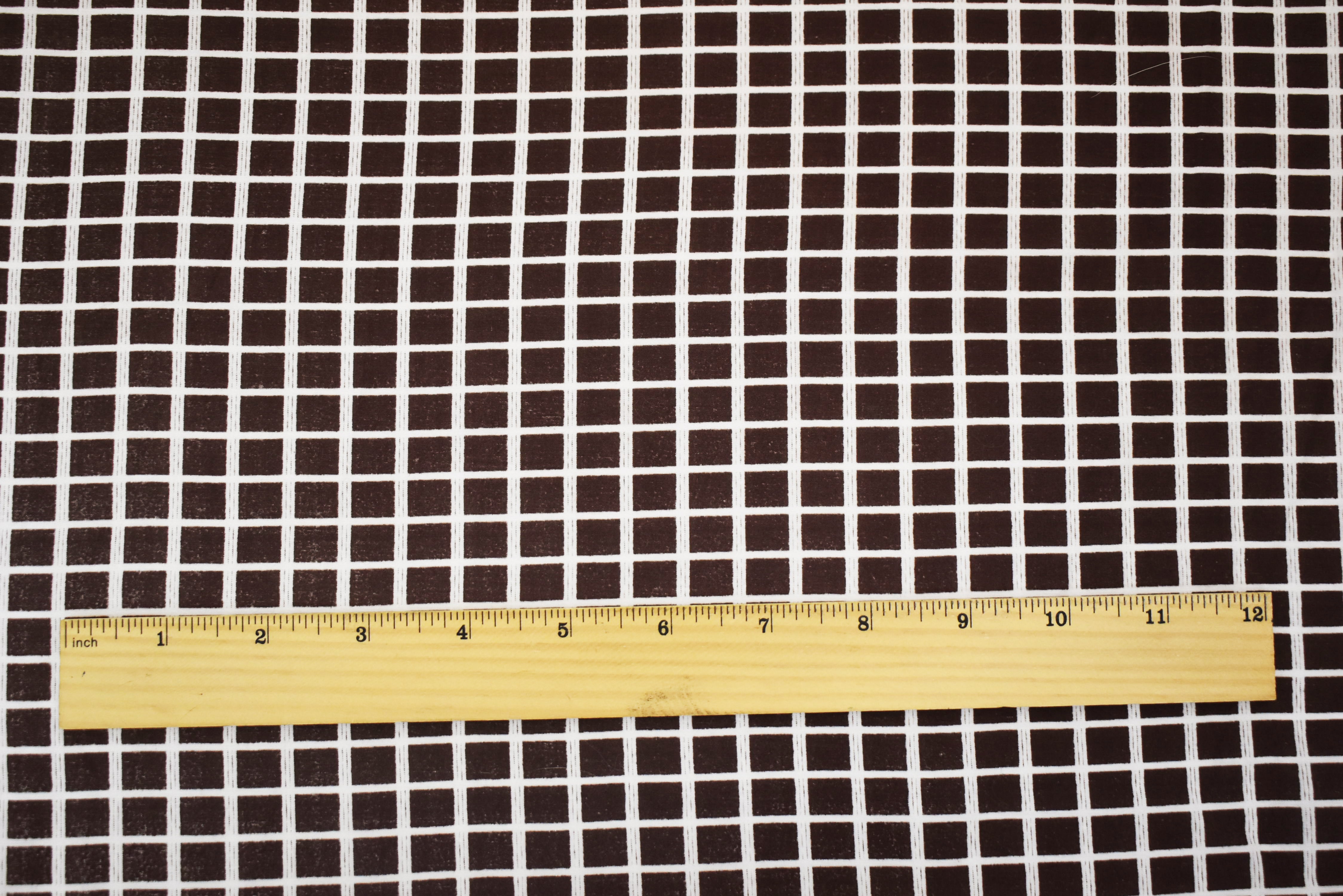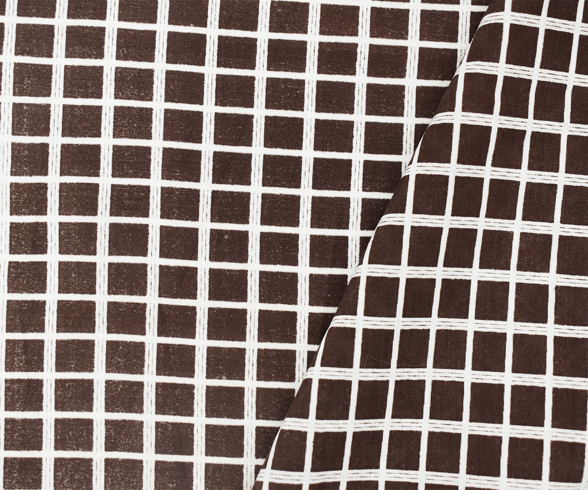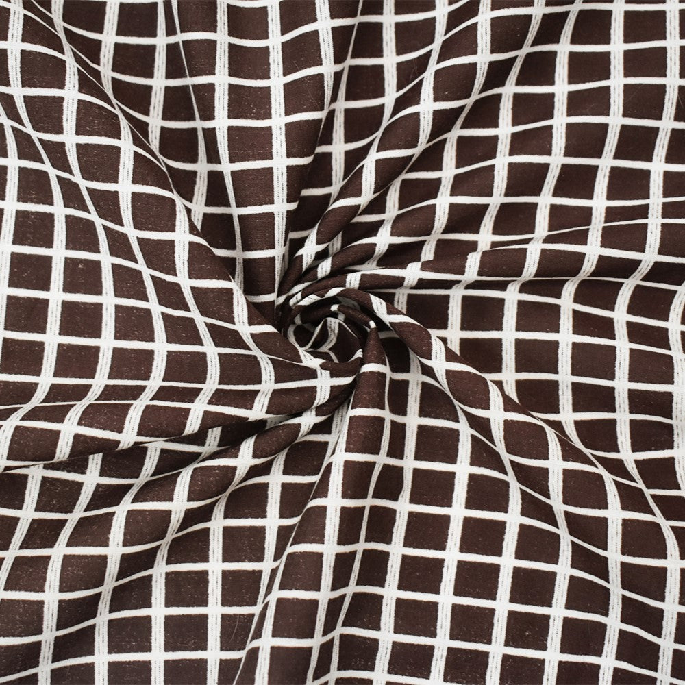 Brown-White Rayon Check Grid Printed Batiste Woven Fabric