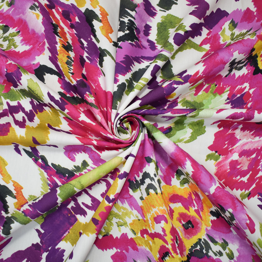 Fuchsia-Purple-Multi Cotton Abstract Floral Printed Broadcloth Woven Fabric