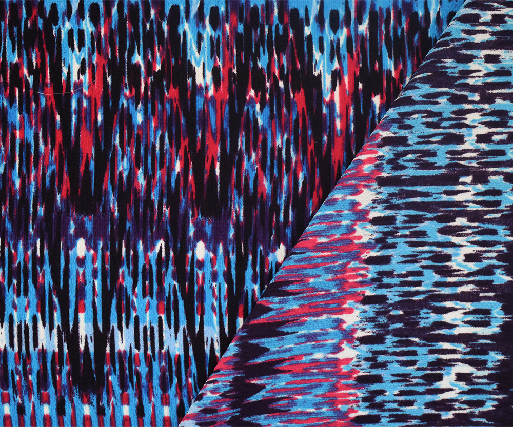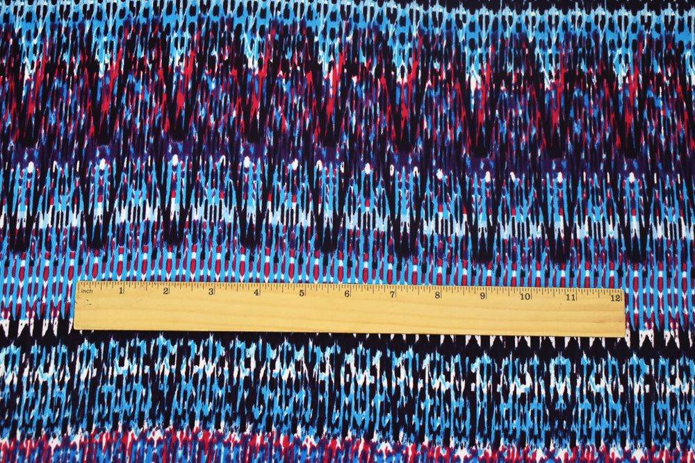 Blue-Multi Abstract Printed Stretch Poly Ghost Crepe Woven Fabric