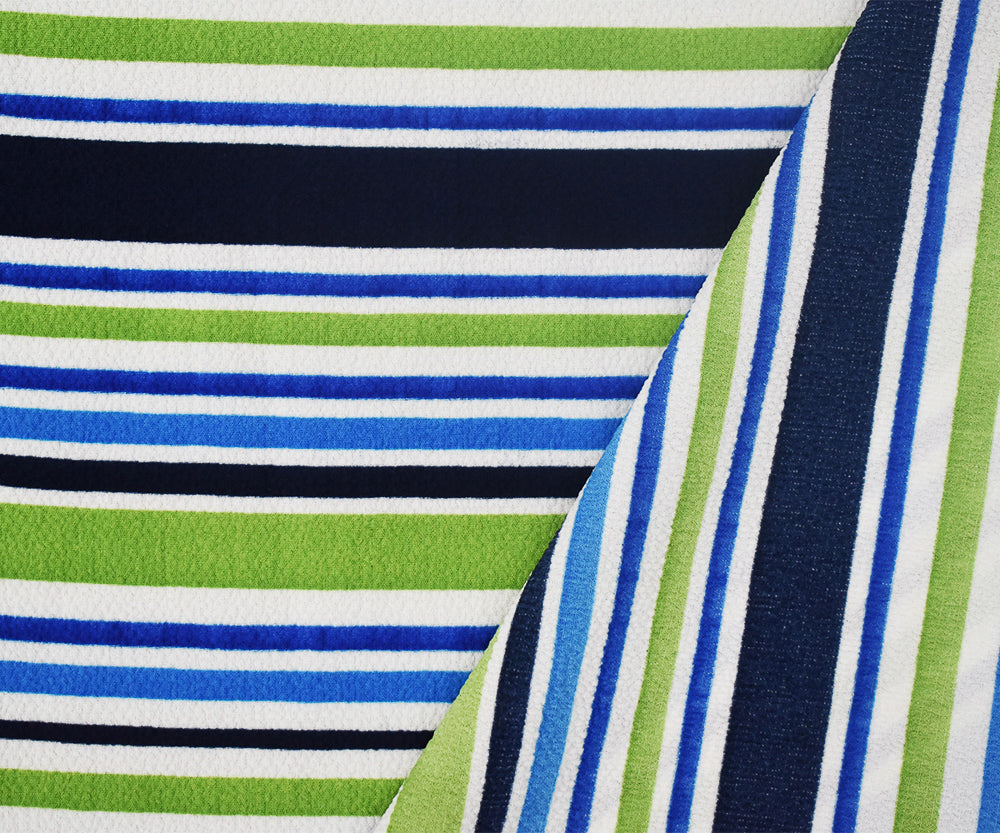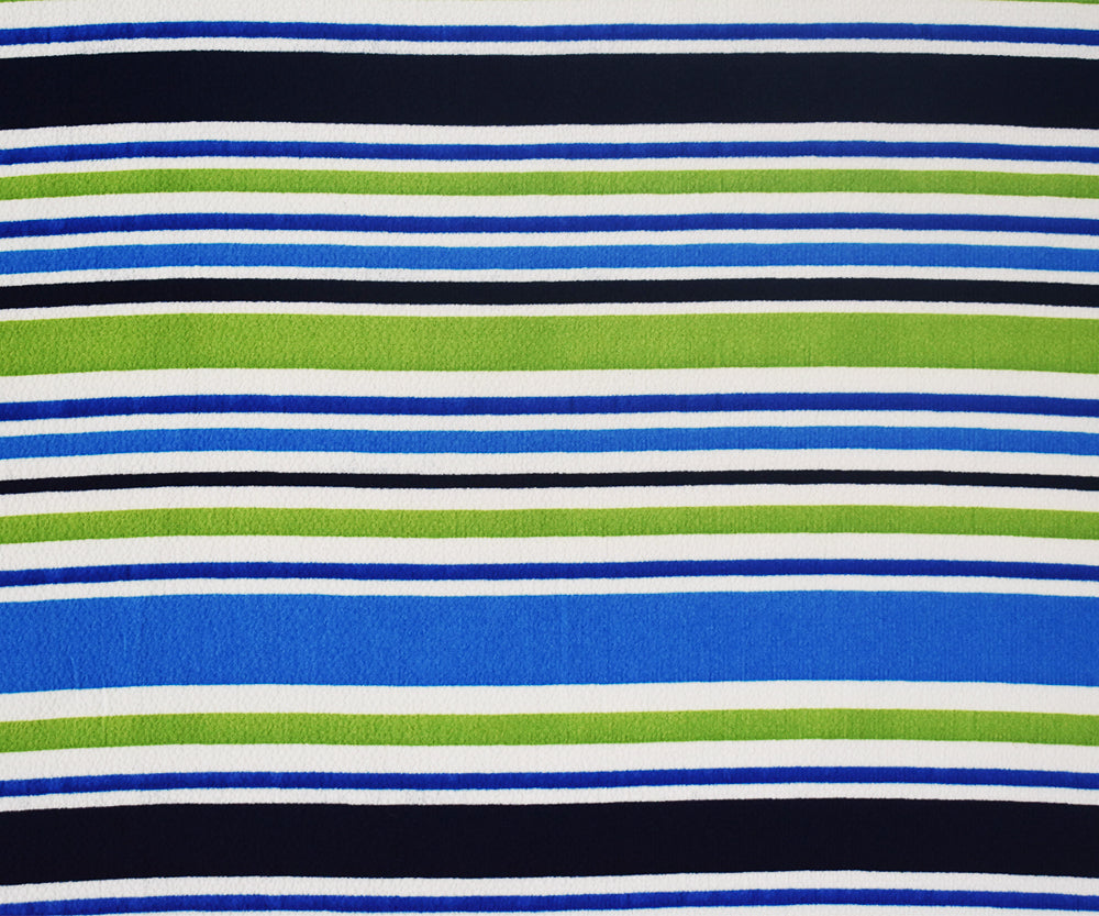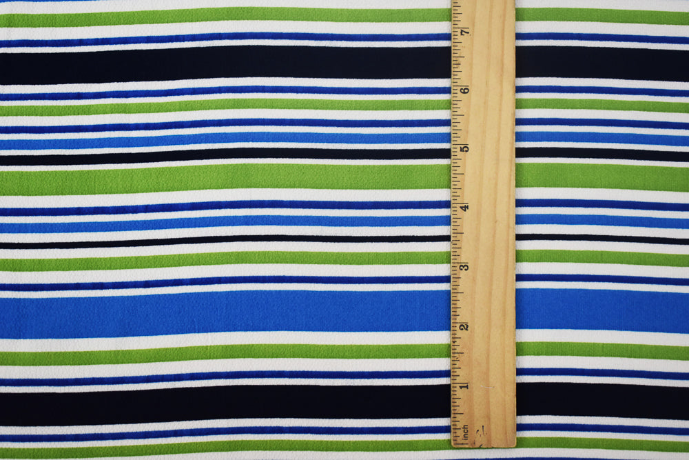 Blue-Multi Stripe Printed Stretch Poly Spandex Ghost Crepe Woven Fabric
