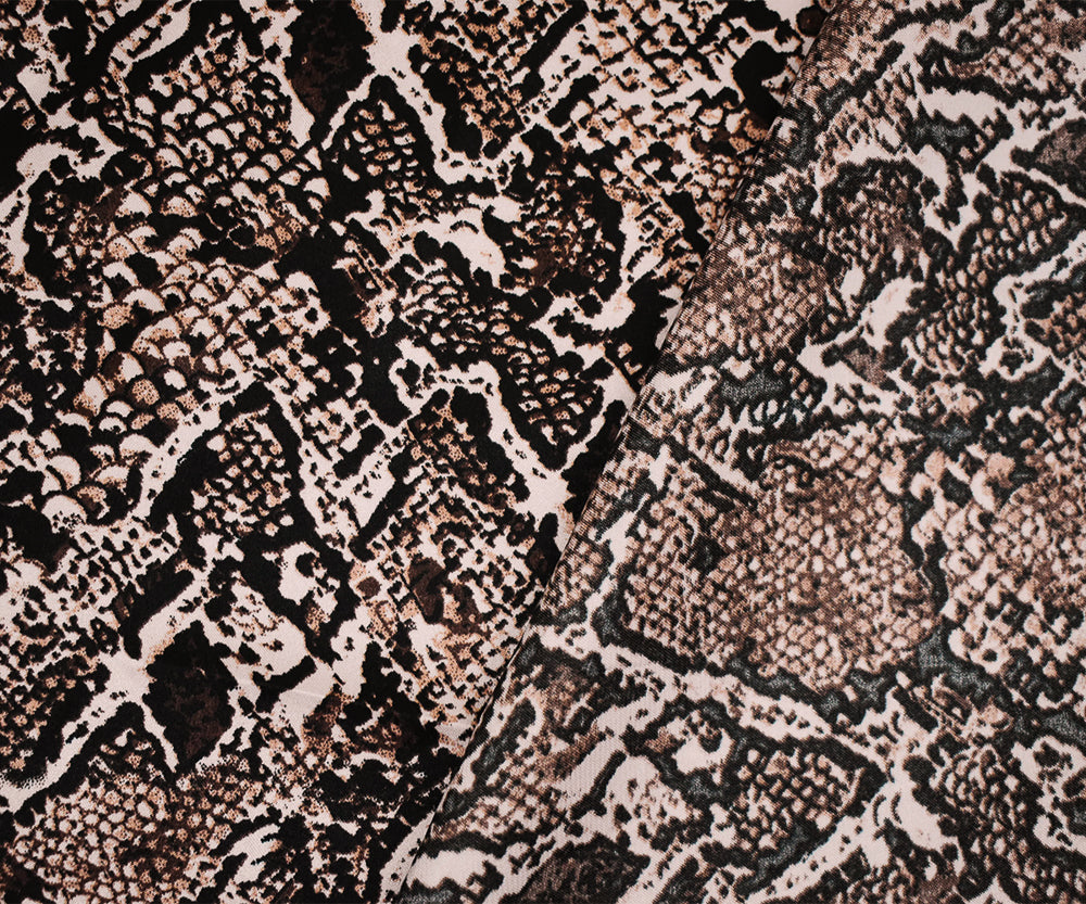 Brown-Beige-Multi Polyester Reptile Skin Printed Charmeuse Woven Fabric