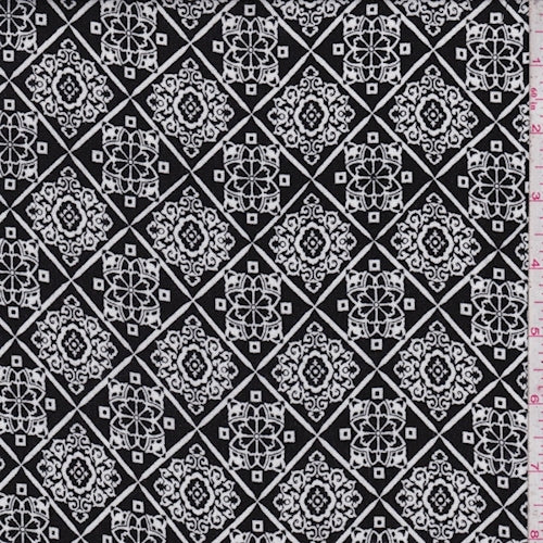 Black/White Scroll Tile Crepon Fabric