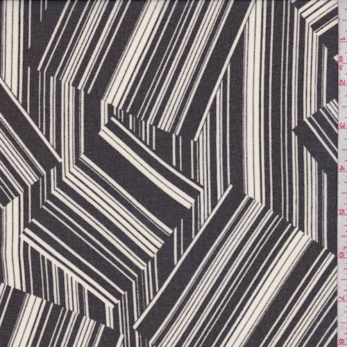 Bone Ivory/Black Linear Block Crepe Georgette Fabric