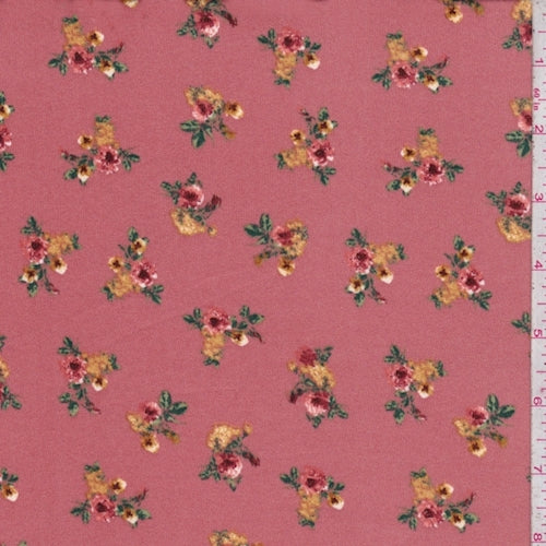 Dark Clay Pink Floral Cluster Double Brushed Jersey Knit Fabric