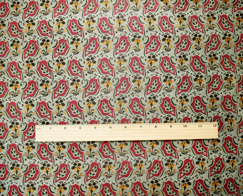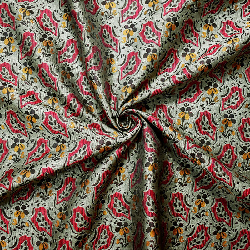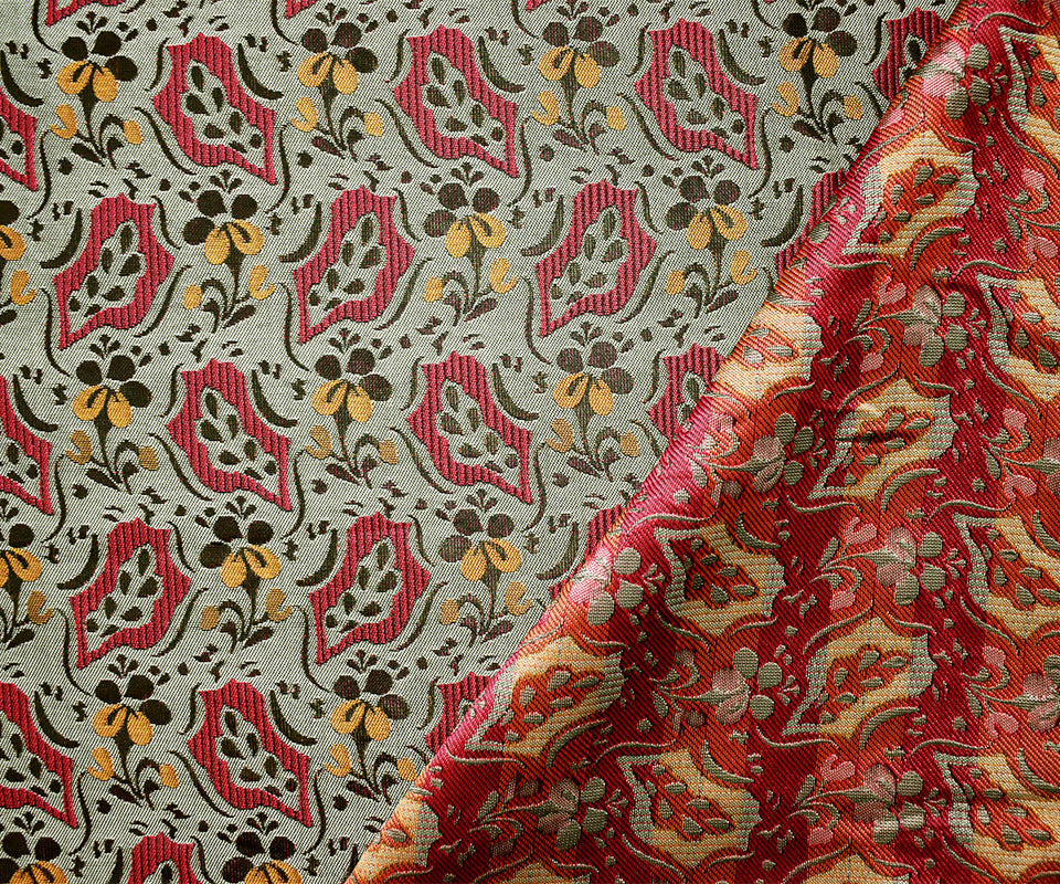 Gray-Red-Multi Polyester Abstract Floral Jacquard Woven Fabric