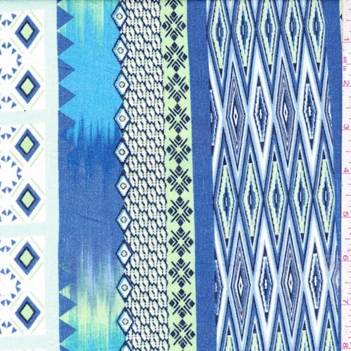 Sky/Ocean/Lime Deco Stripe Crepon Fabric