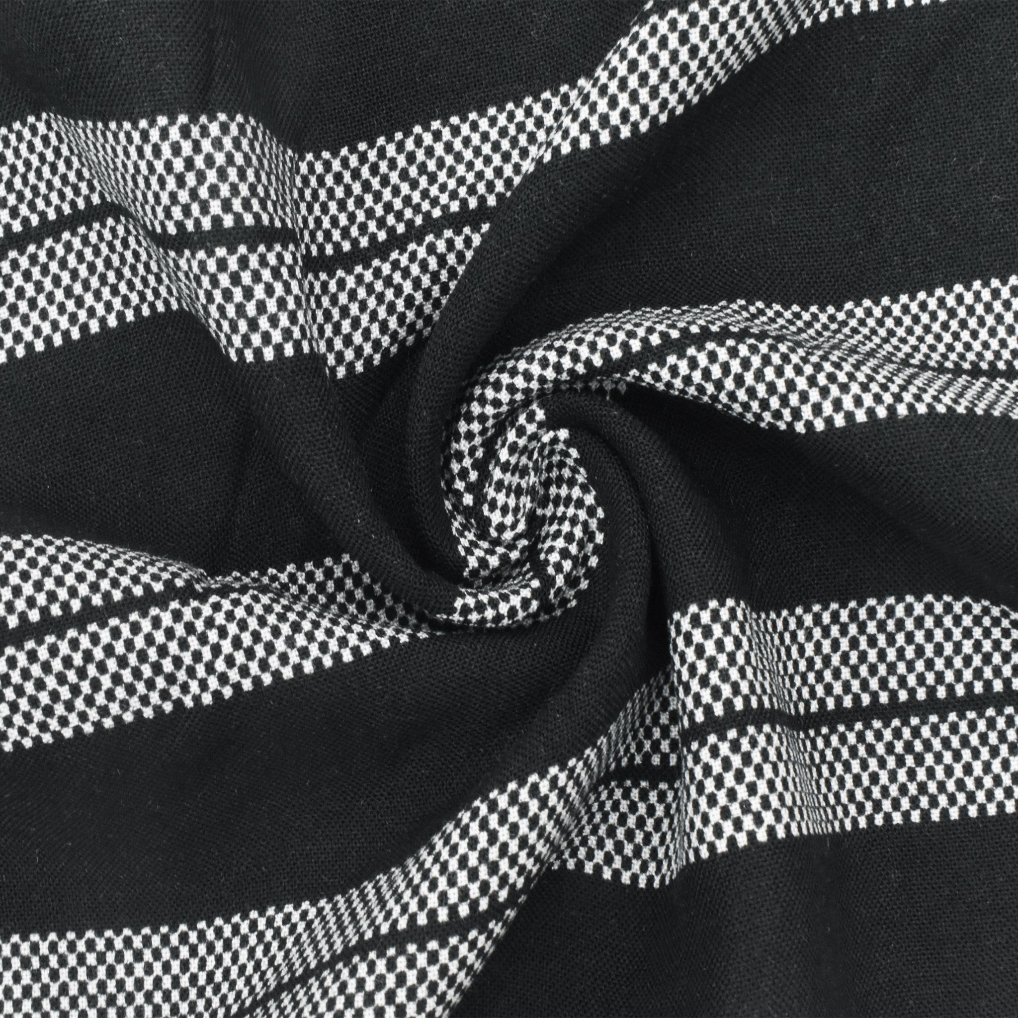 Basic Black-White Stripe Mini Check Printed Challis Woven Fabric
