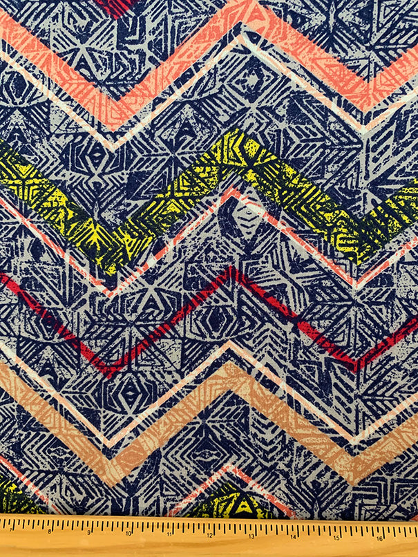 Beige and Navy Aztec Multi Print Rayon Challis Fabric
