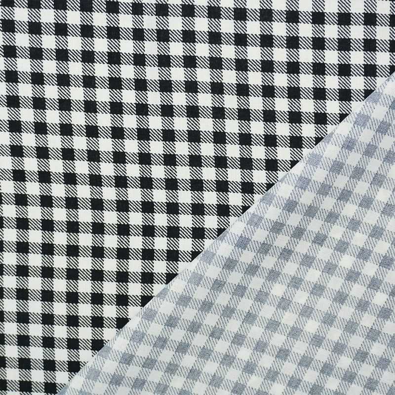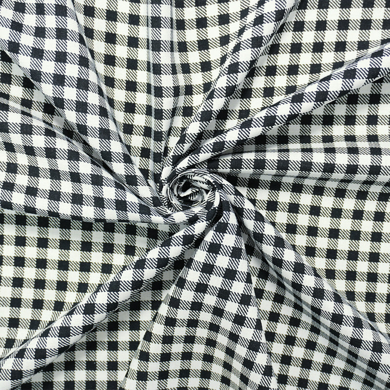 Black-White Rayon Check-Gingham Printed Challis Woven Fabric