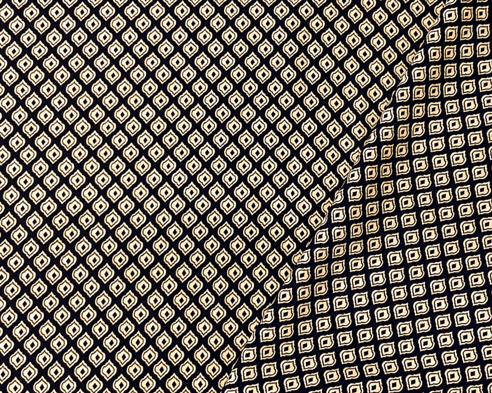 Blue-Brown Poly-Rayon Ogee Printed Challis Woven Fabric