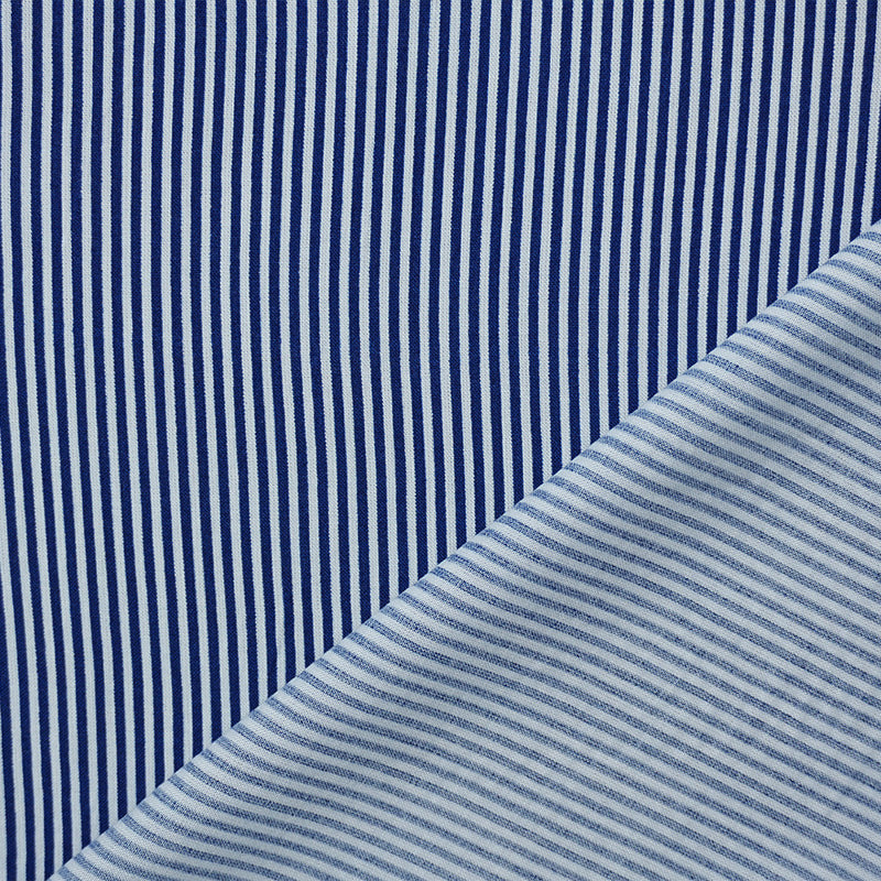 Blue-White Rayon Stripe Printed Challis Woven Fabric