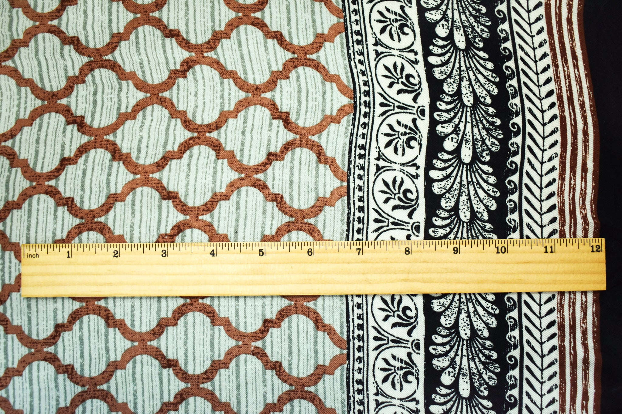 Brown-Gray-Multi Border Multi Pattern Printed Twill Woven Fabric
