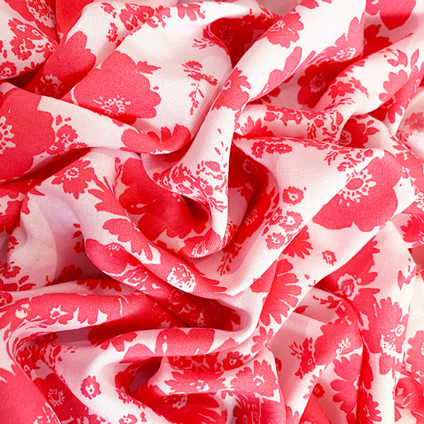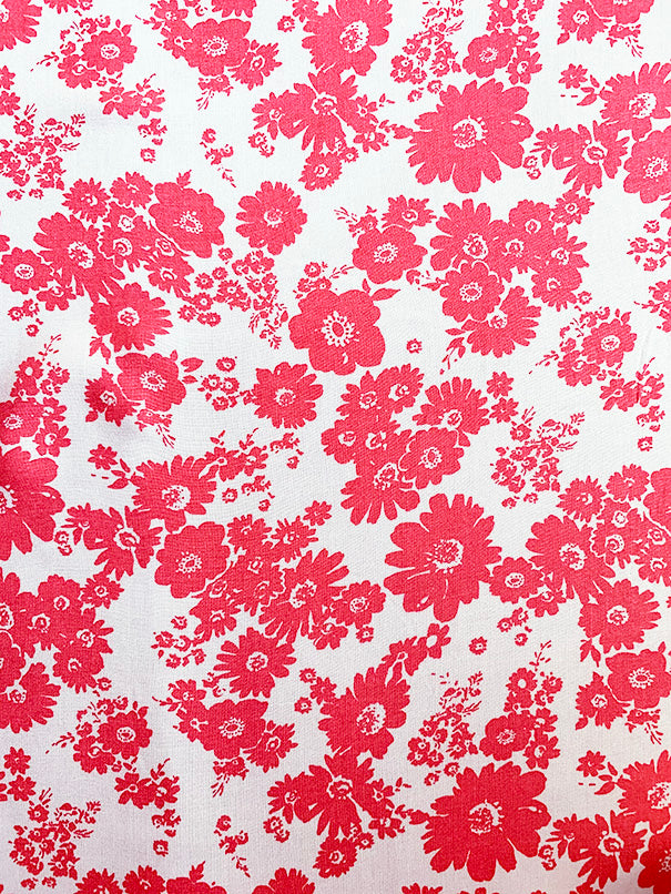 Coral and White Daisy Print Rayon Challis Fabric