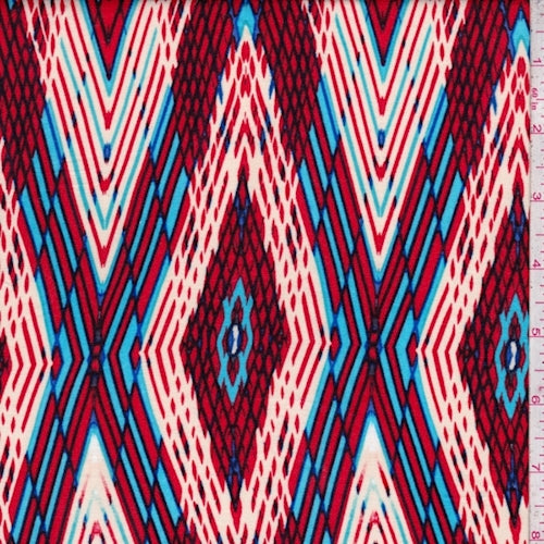 Cream/Fire/Turquoise Diamond Rayon Challis Fabric
