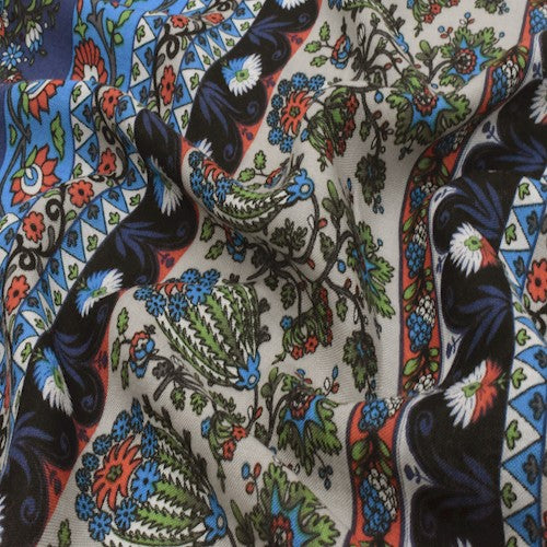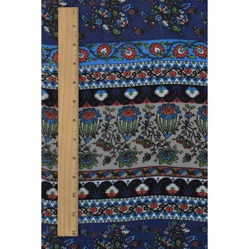 Deep Blue/Multi Floral Stripe Printed Challis Woven Fabric
