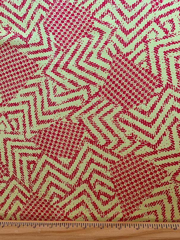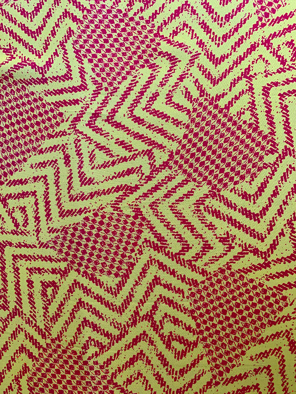 Neon Red and Yellow Geometric Print Rayon Challis Fabric