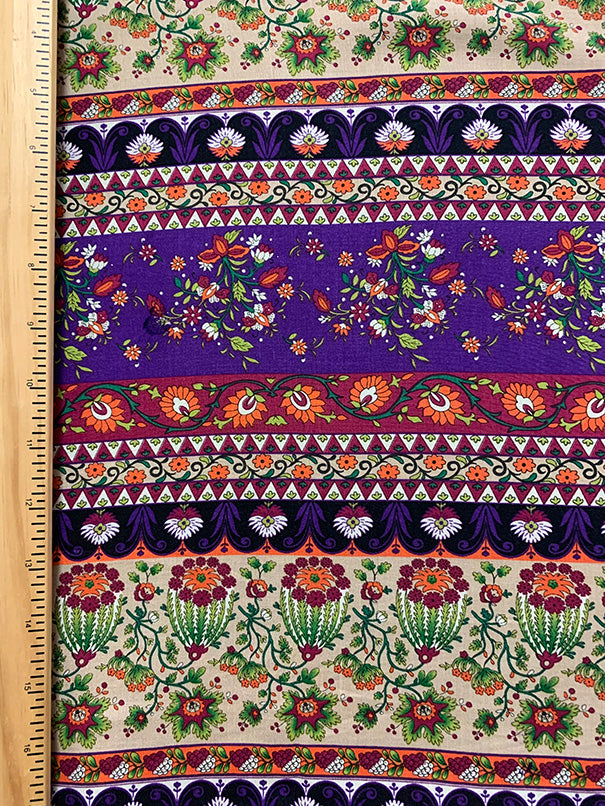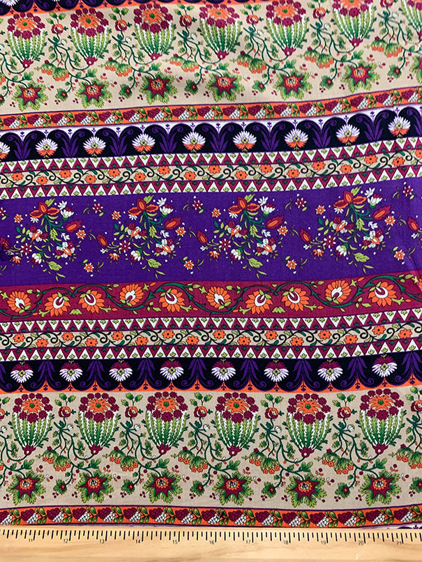 Purple Multi Floral Stripe Print Rayon Challis Fabric