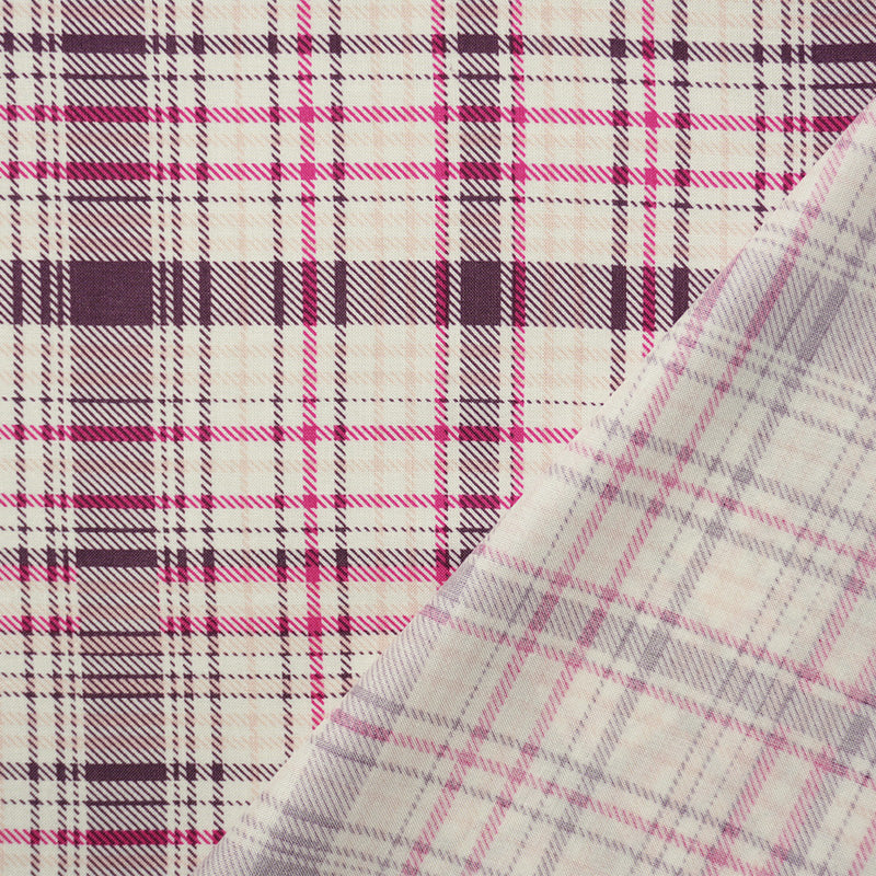 Purple-Pink-White Rayon Plaid Printed Challis Woven Fabric