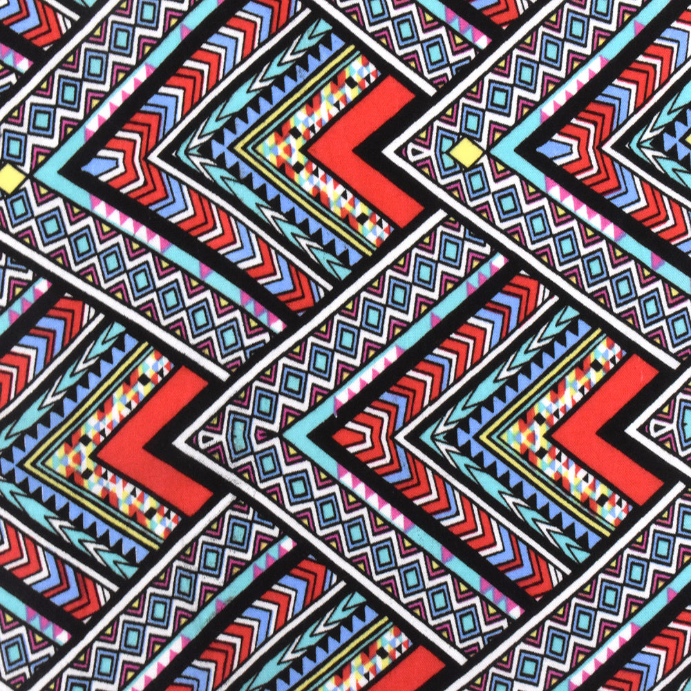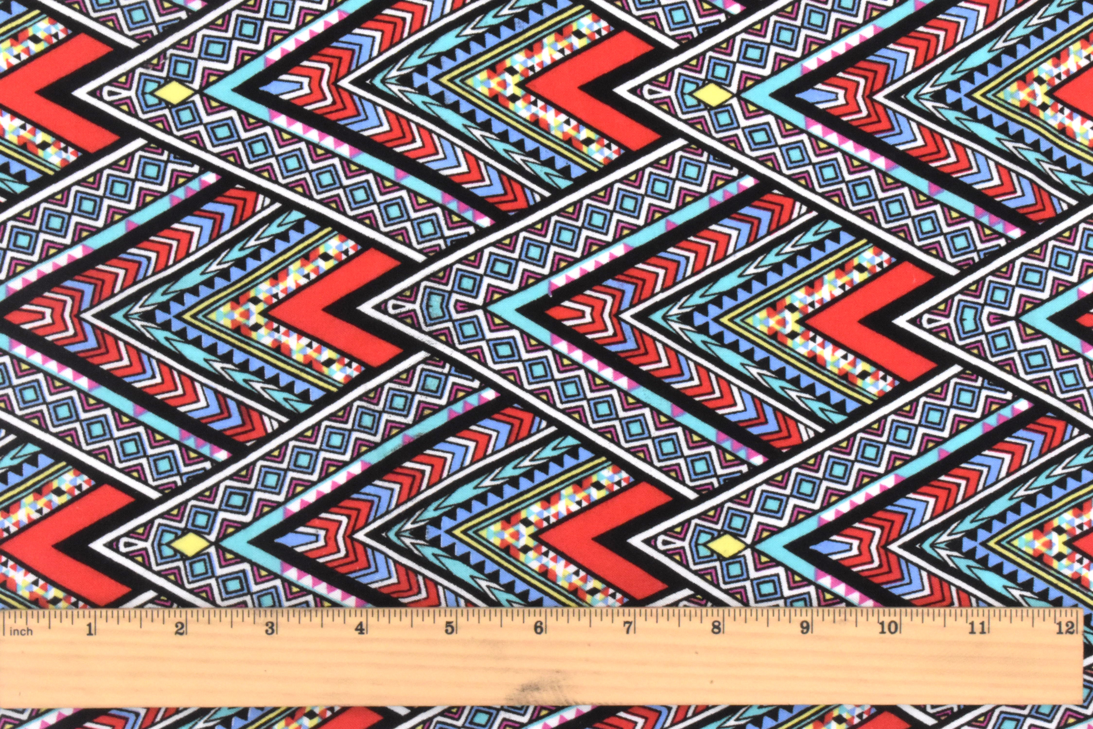 Red-Teal-Multi Abstract Chevron Aztec Printed Challis Fabric