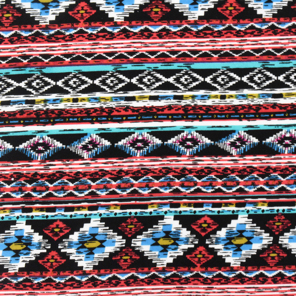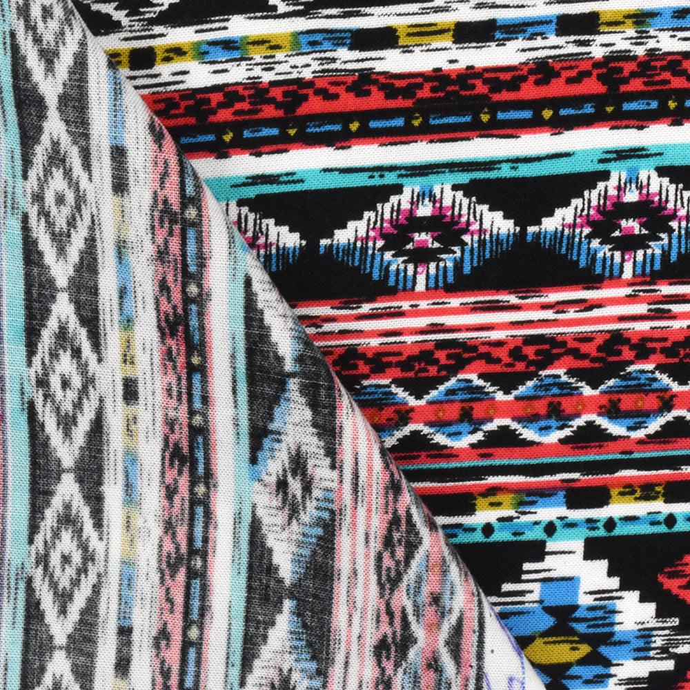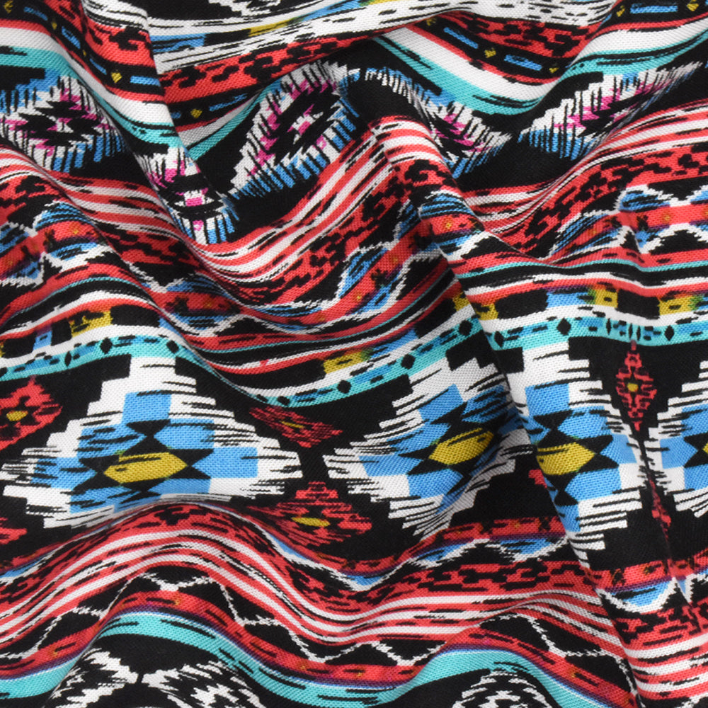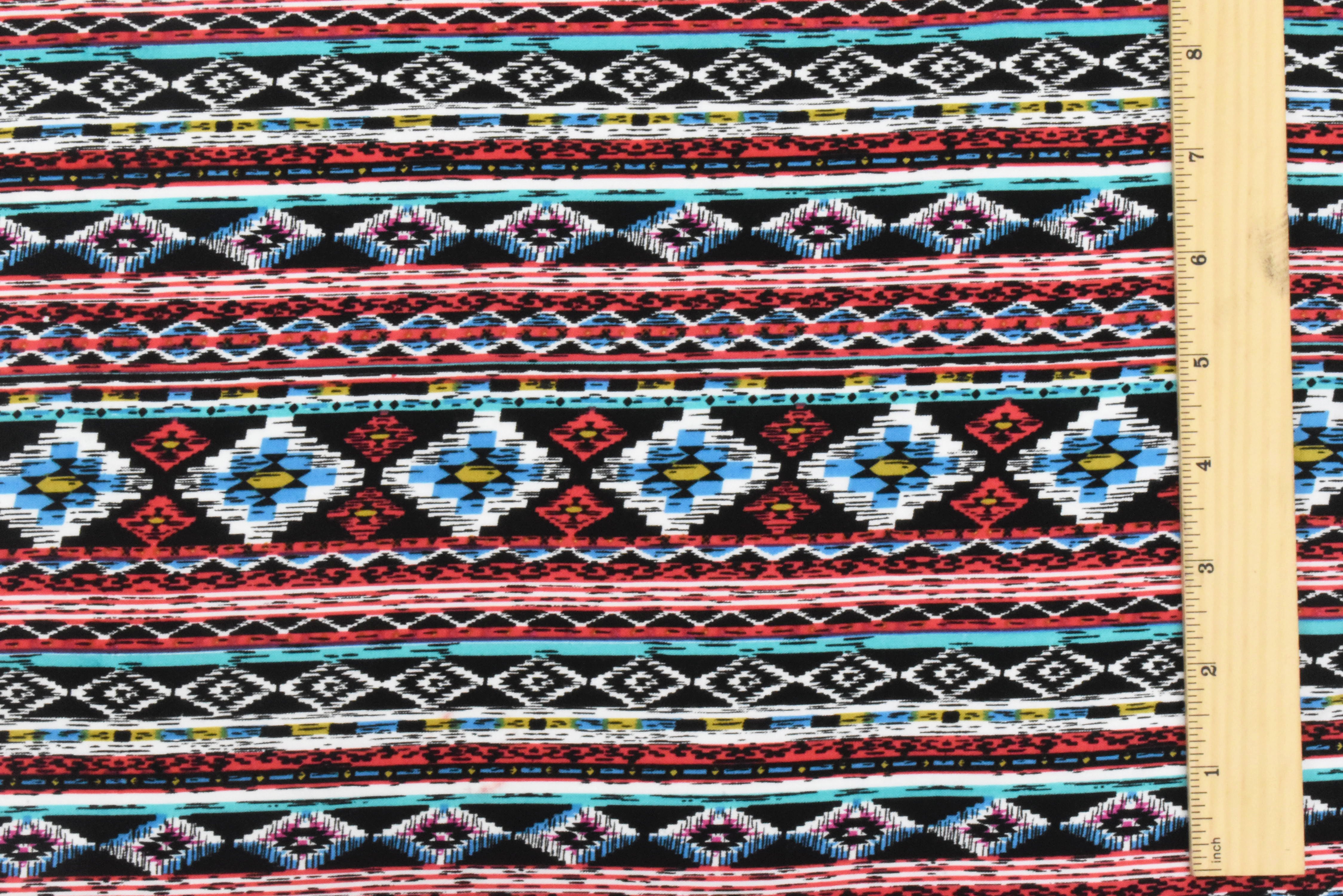 Red-Teal-Multi Aztec Stripe Printed Rayon Challis Woven Fabric