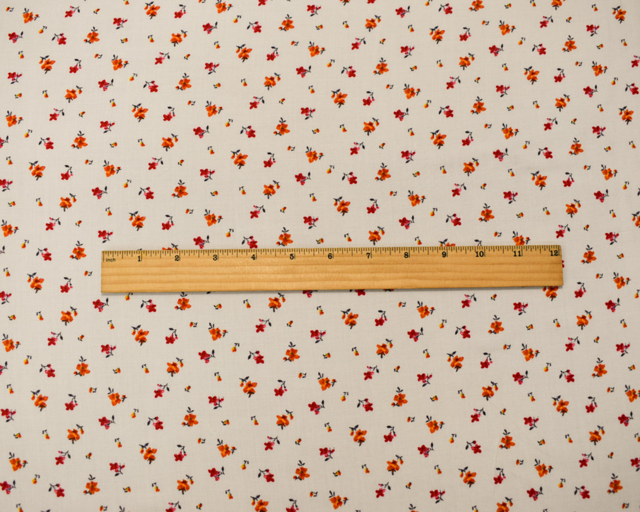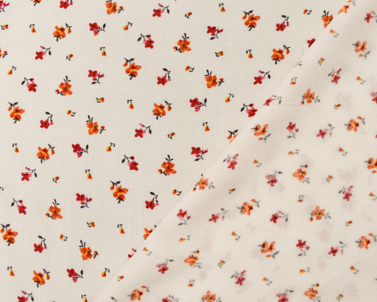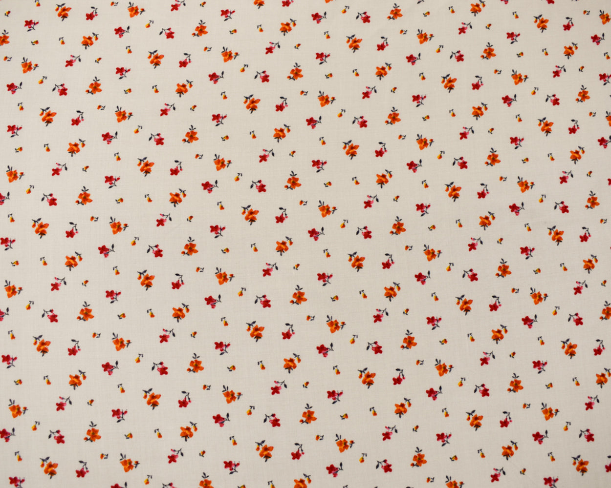 White-Orange-Multi Rayon Ditsy Floral Printed Challis Woven Fabric