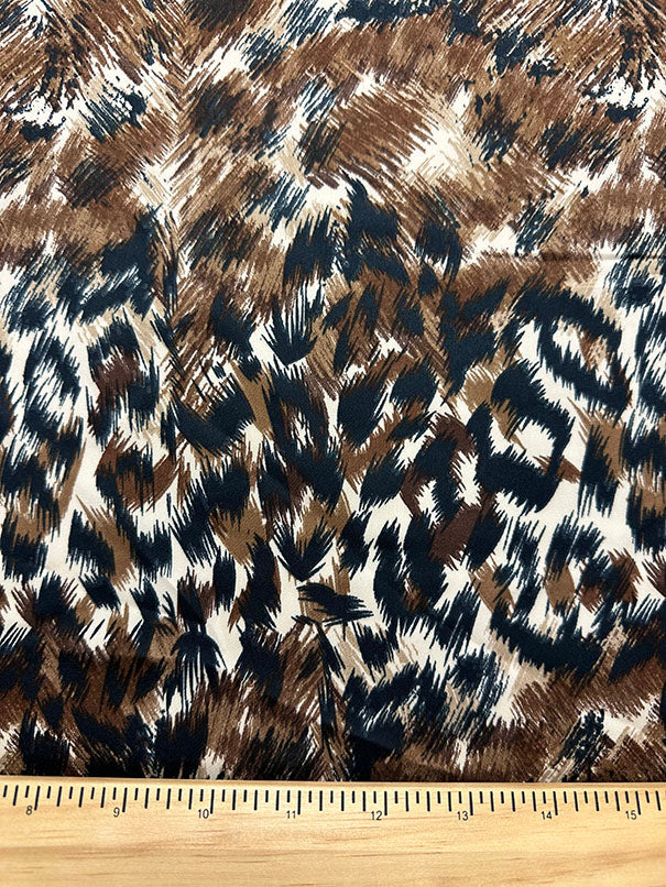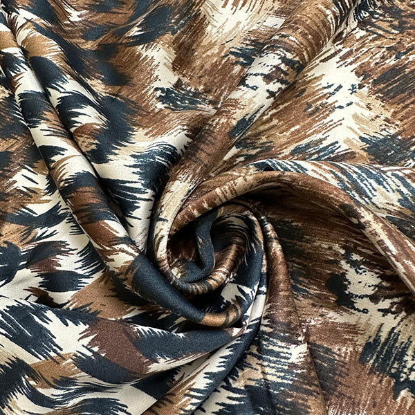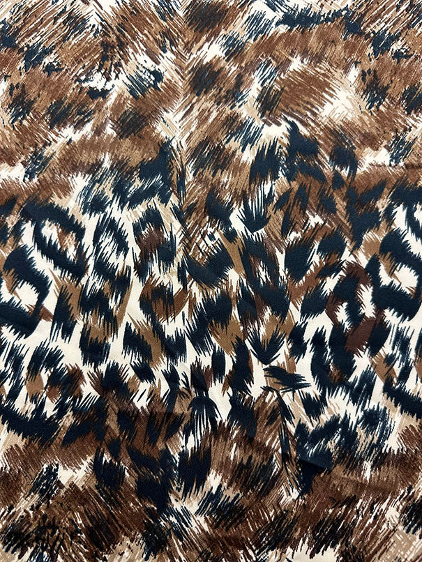 -Black, Tan, & Brown Animal Print on Beige Sueded Poly Charmeuse Fabric