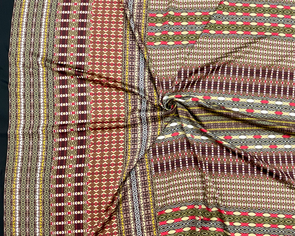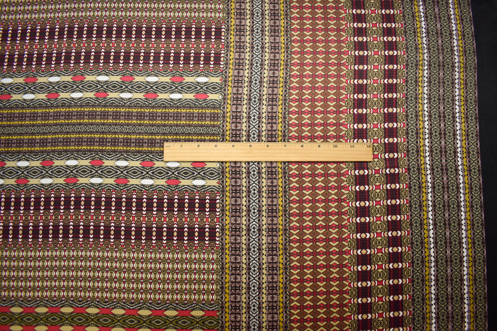 Black-Red-Multi Poly Aztec Border Printed Charmeuse Woven Fabric
