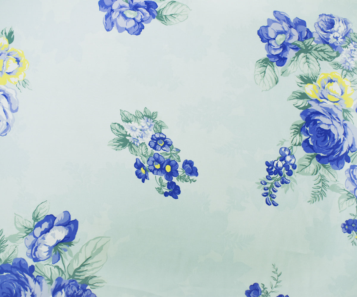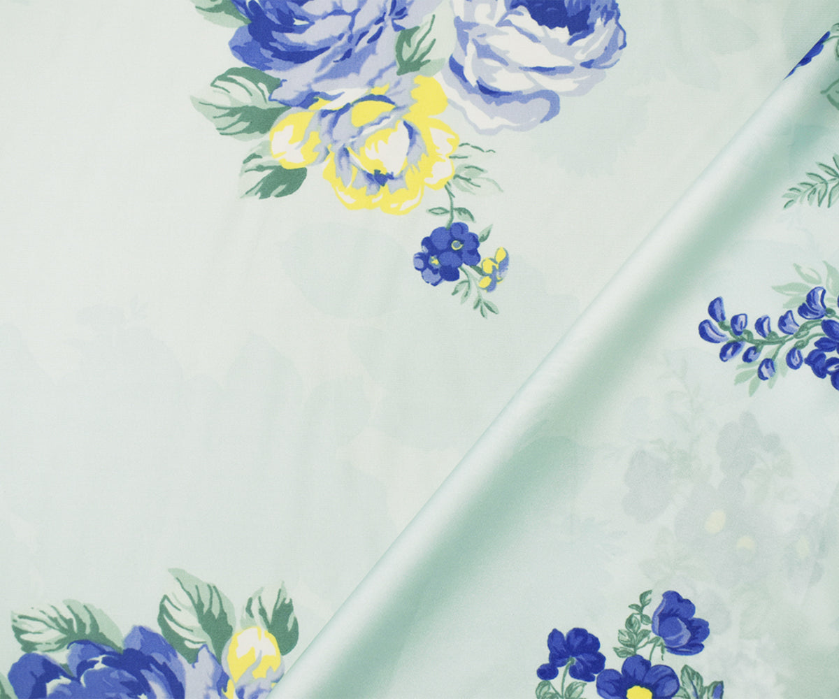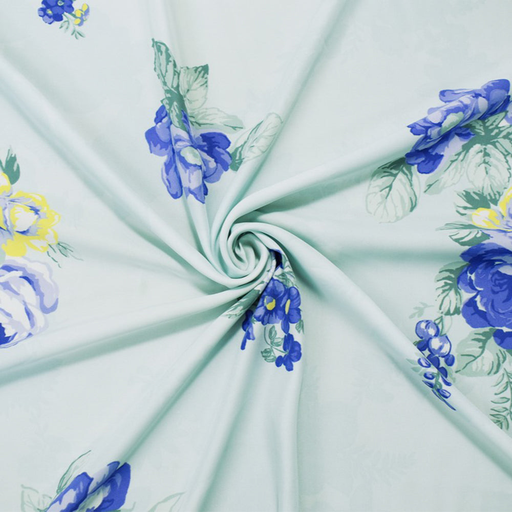 Blue-Yellow-Multi Multi Poly Floral Printed Charmeuse Satin Woven Fabric
