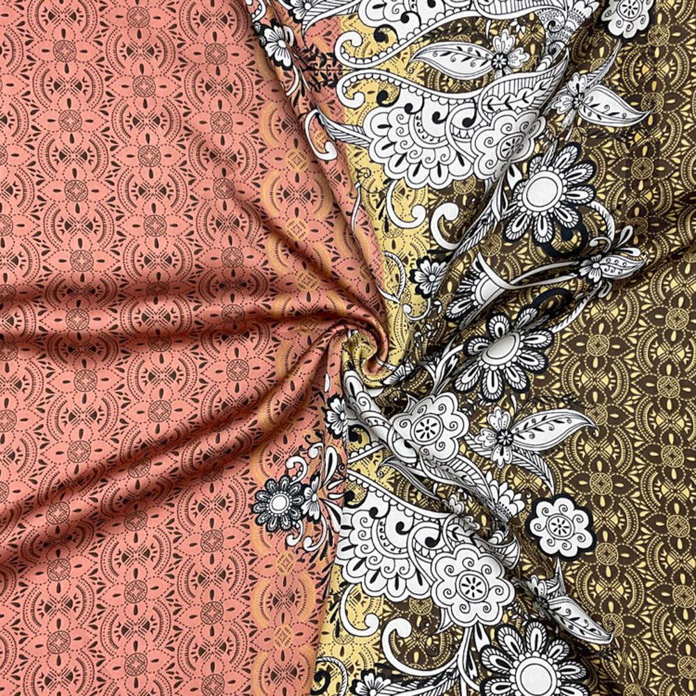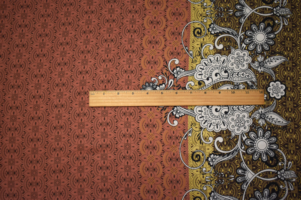 Orange-Multi Poly Paisley Floral Border Printed Dull Charmeuse Woven Fabric