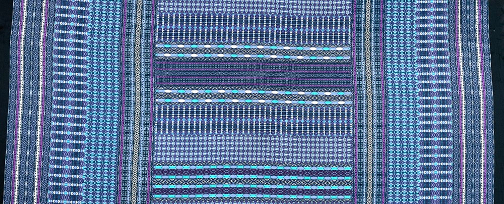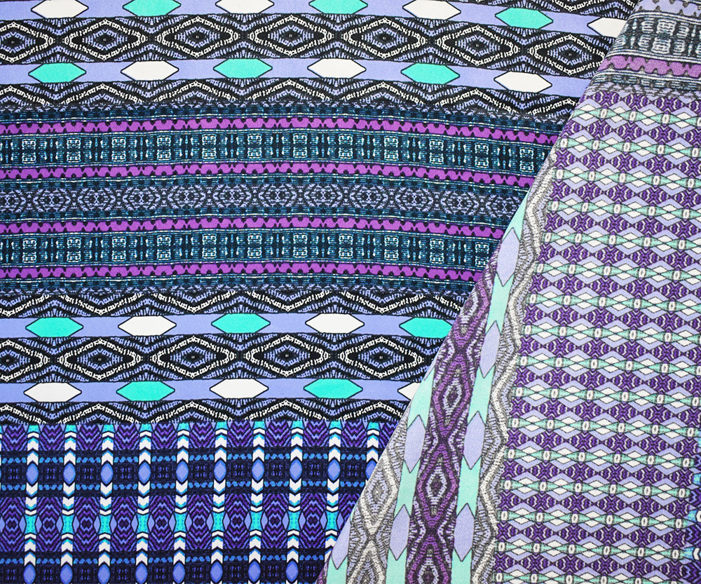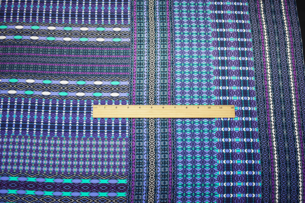 Purple-Inidigo-Multi Poly Aztec Border Printed Charmeuse Woven Fabric