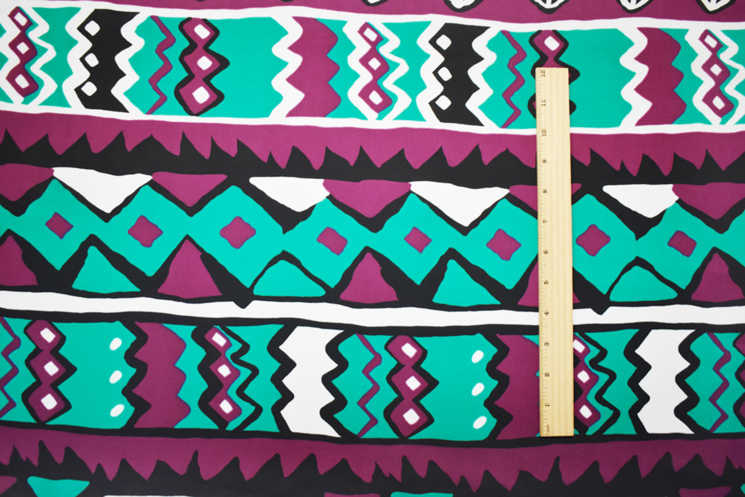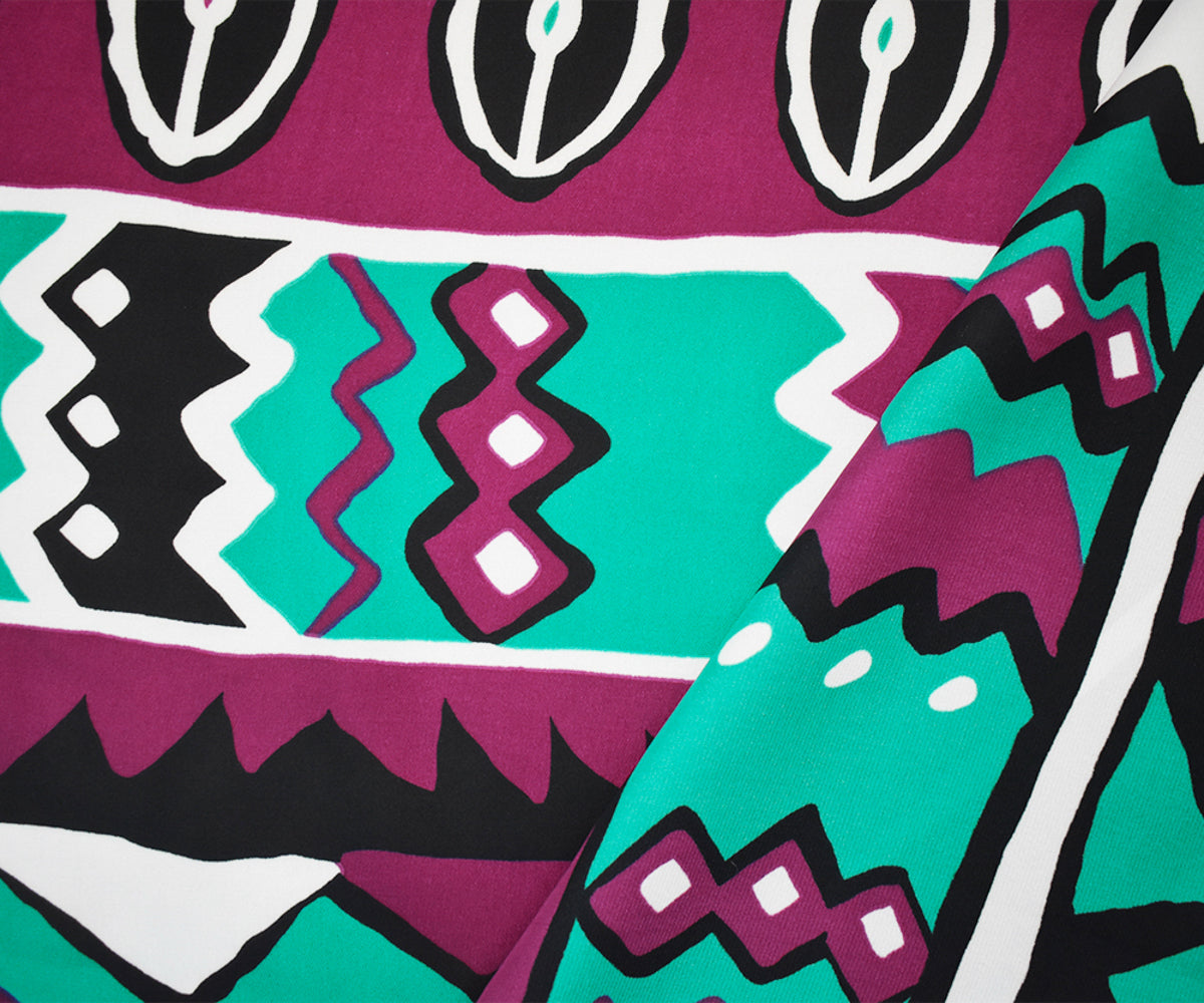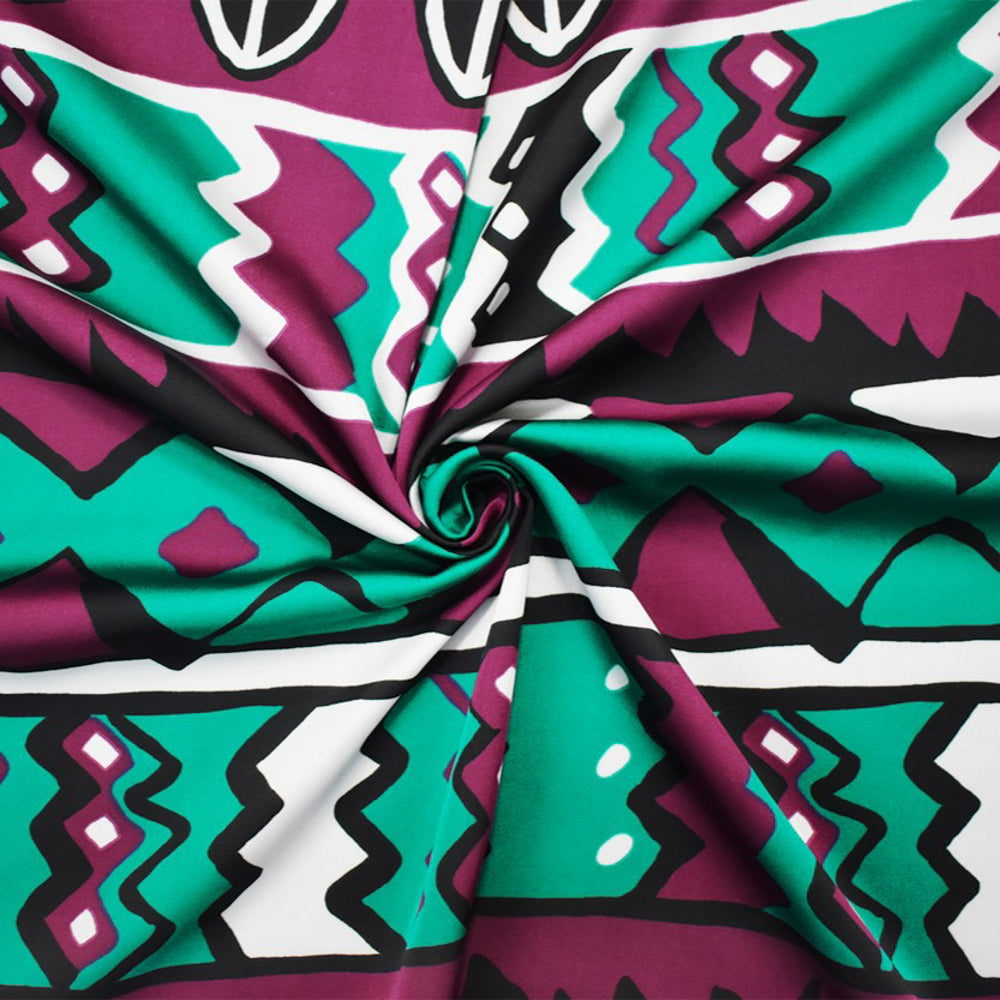 Purple-Turquoise-Multi Poly Aztec Stripe Printed Charmeuse Satin Woven Fabric
