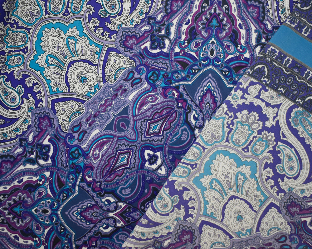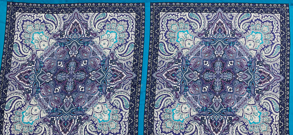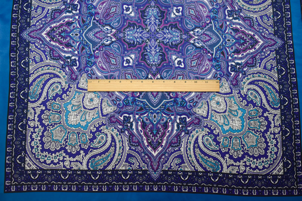 Turquoise-Purple-Multi Poly Paisley Bandana PANEL Printed Charmeuse Woven Fabric