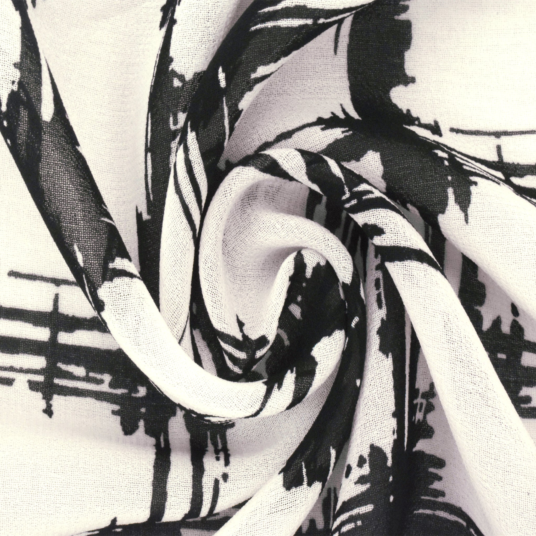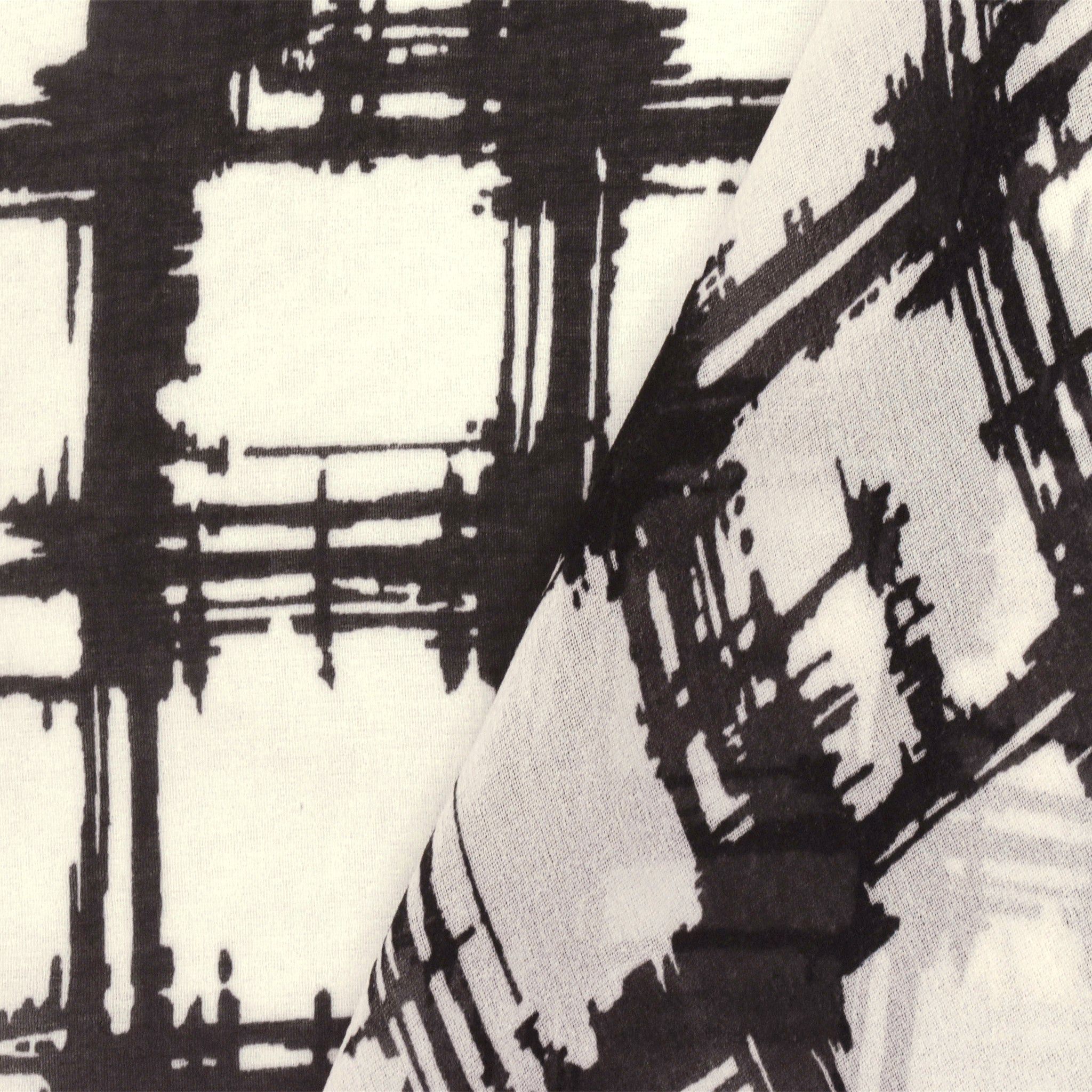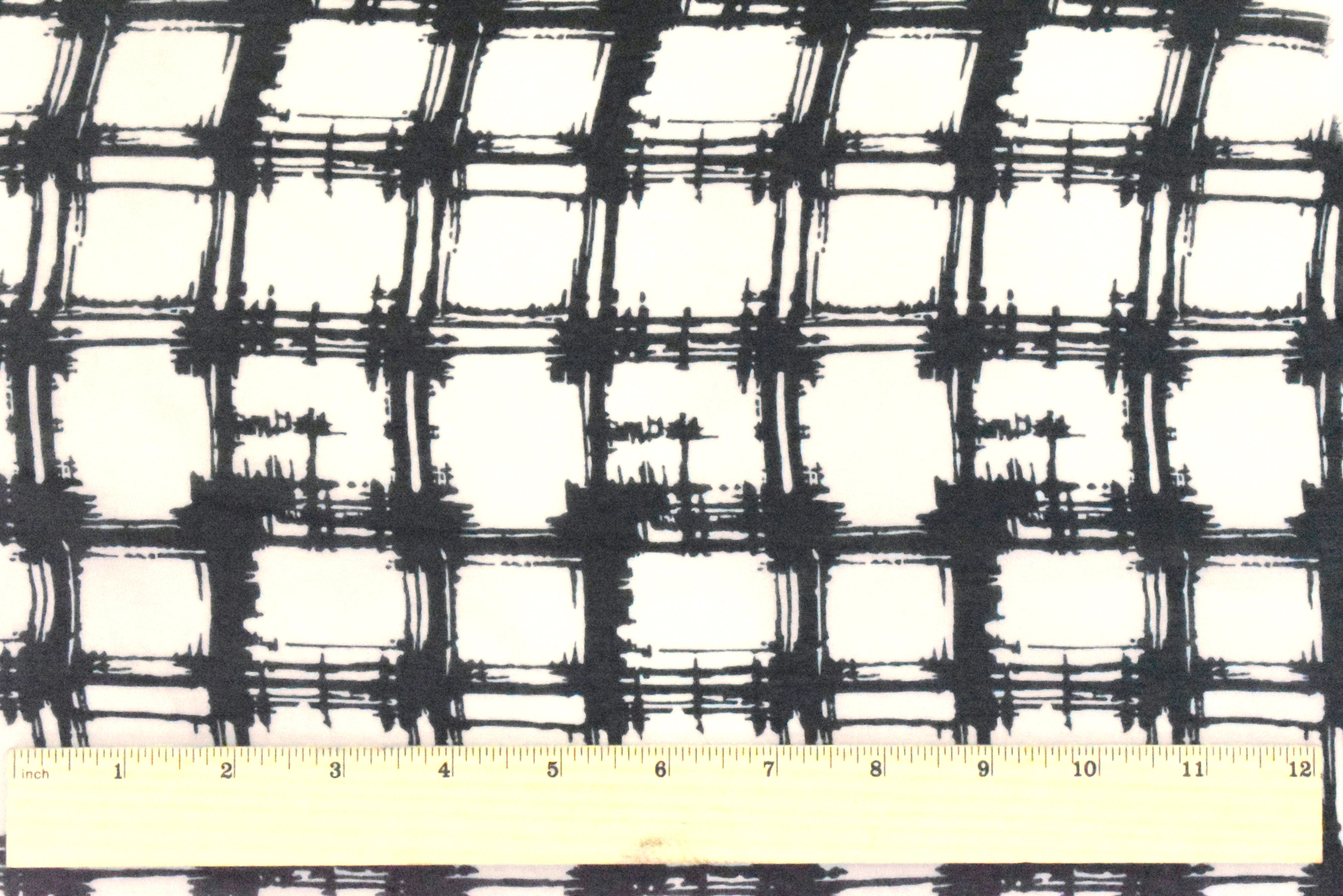 Mist Pink-Black Abstract Check Printed Poly Chiffon Woven Fabric