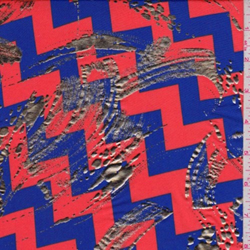 2 YD PC-Salmon Red/Royal Chevron Nylon Knit Fabric