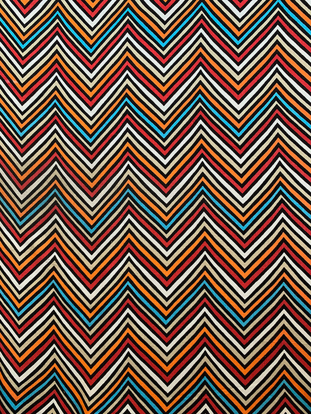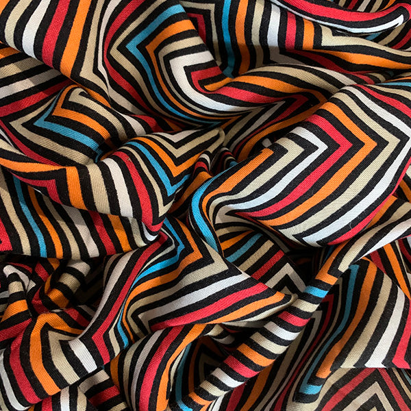 -Beige, White, Black, Turquoise, Red, & Orange Multi Chevron Print Rayon Challis Fabric