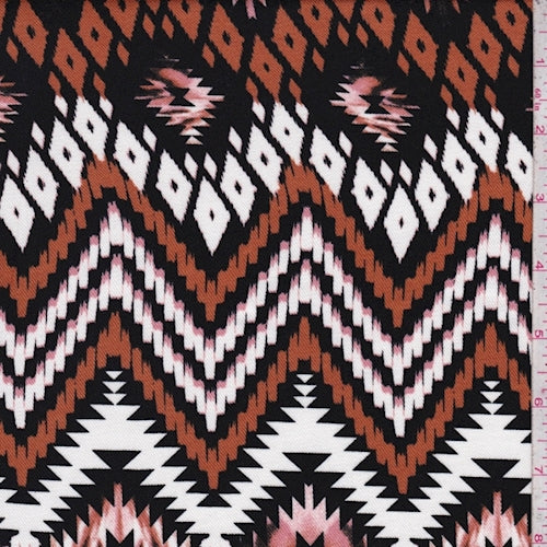 Black/Pumpkin/White Aztec Chevron Challis Fabric