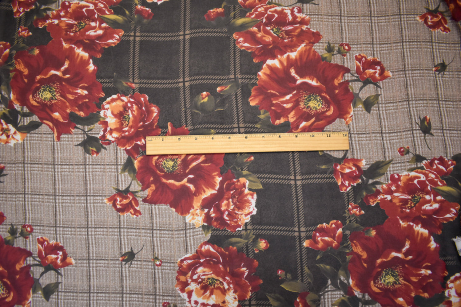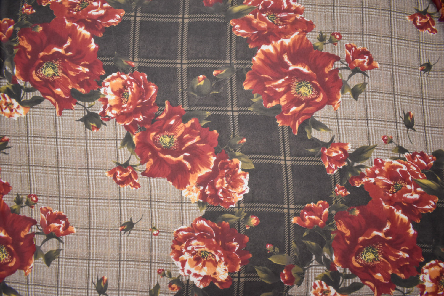 -Beig-Red-Multi Poly Plaid Floral Printed Chiffon Woven Fabric