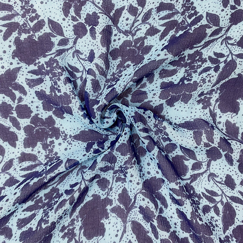 Blue Poly Floral Printed Yoryu Chiffon Woven Fabric