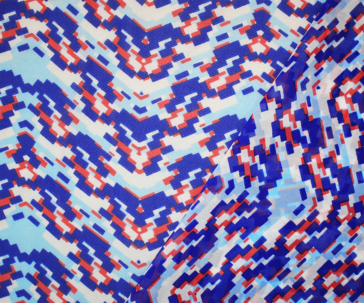 -100% polyester chiffon woven fabric printed with a pixelated chevron pattern