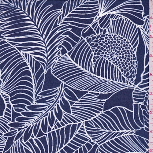 Dark Blue/White Sketch Floral Chiffon Fabric