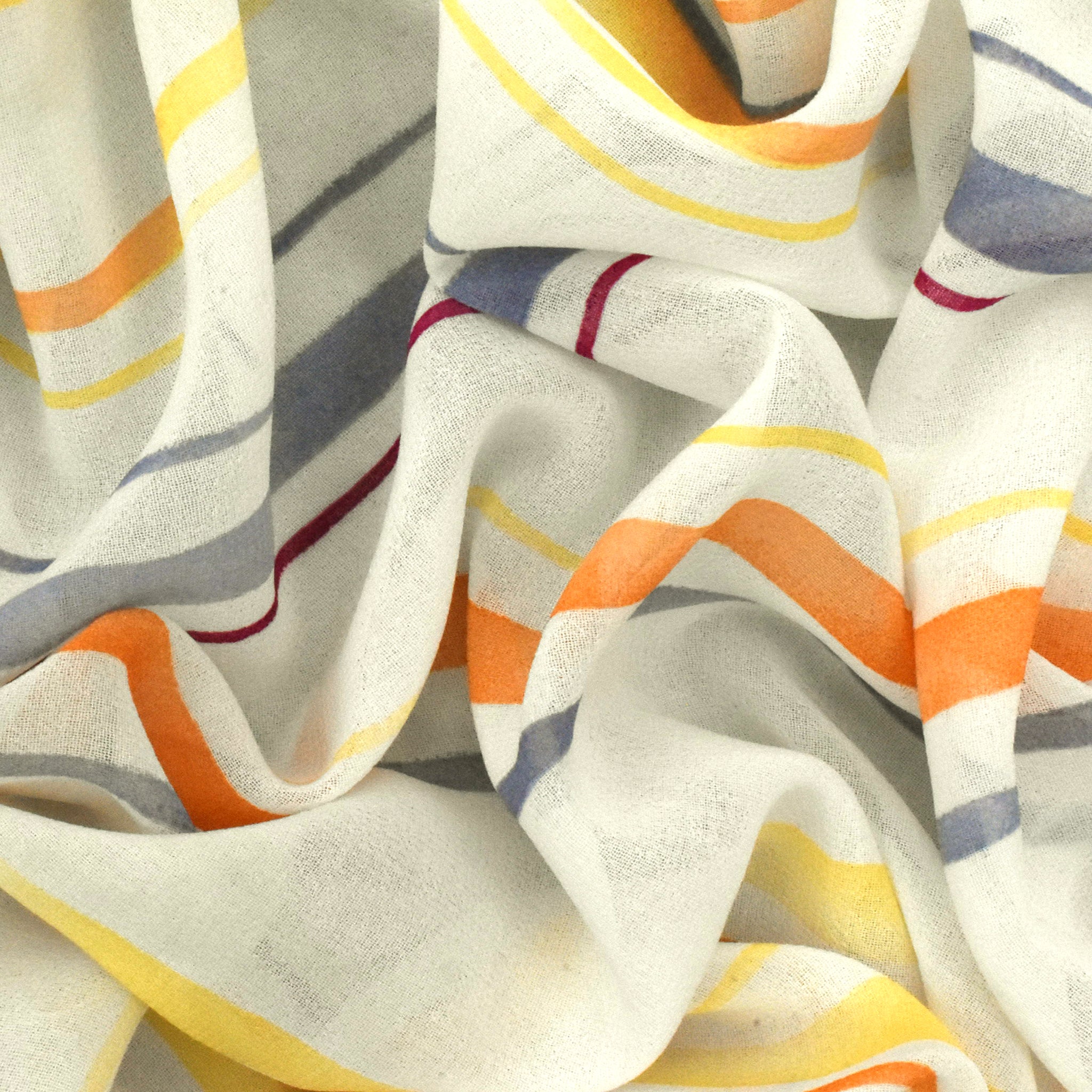 Ivory-Yellow-Multi Stripe Printed Poly Chiffon Woven Fabric
