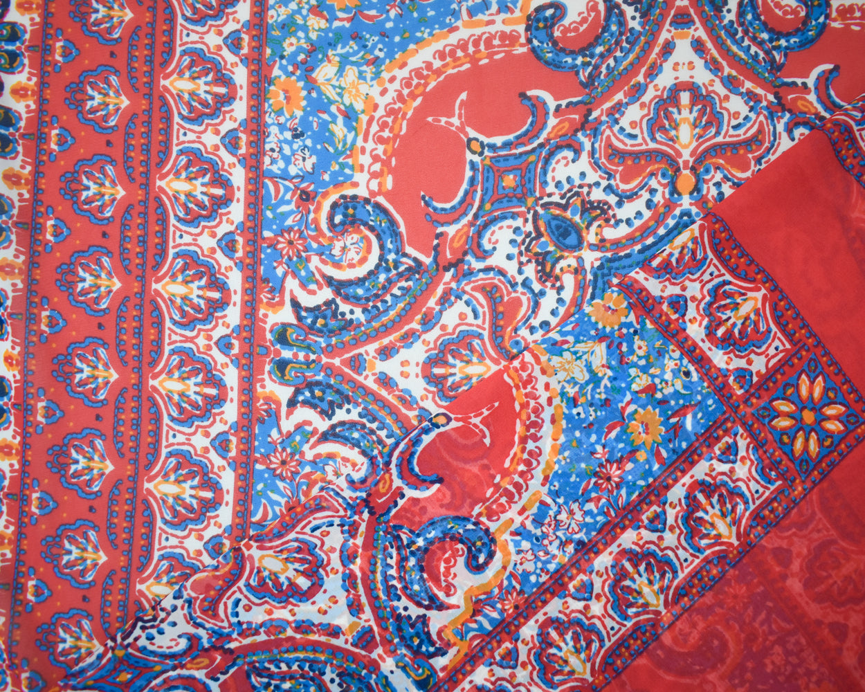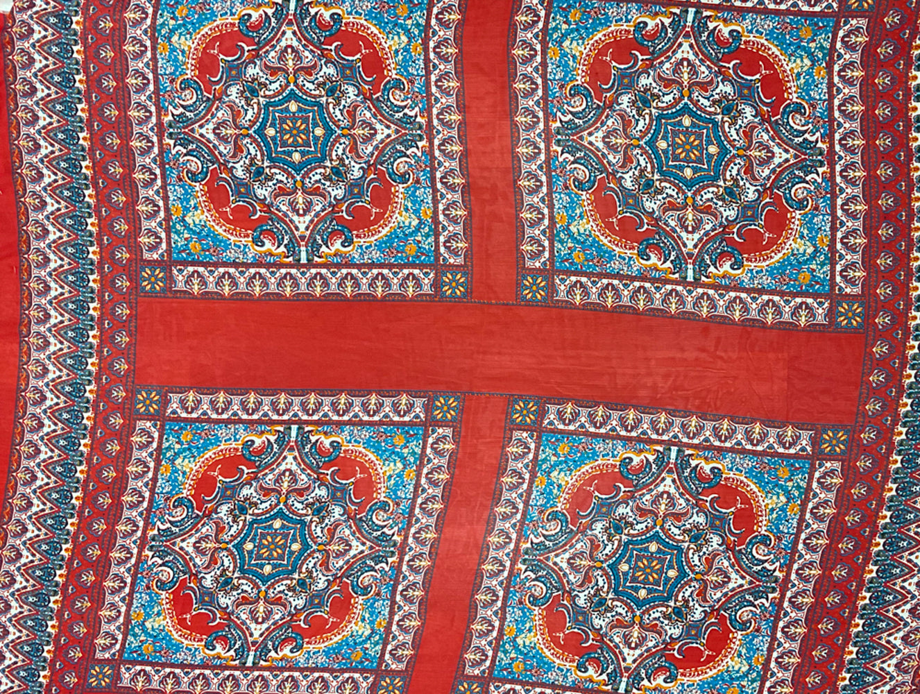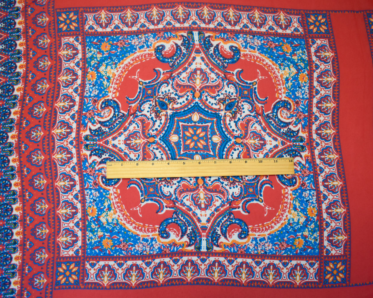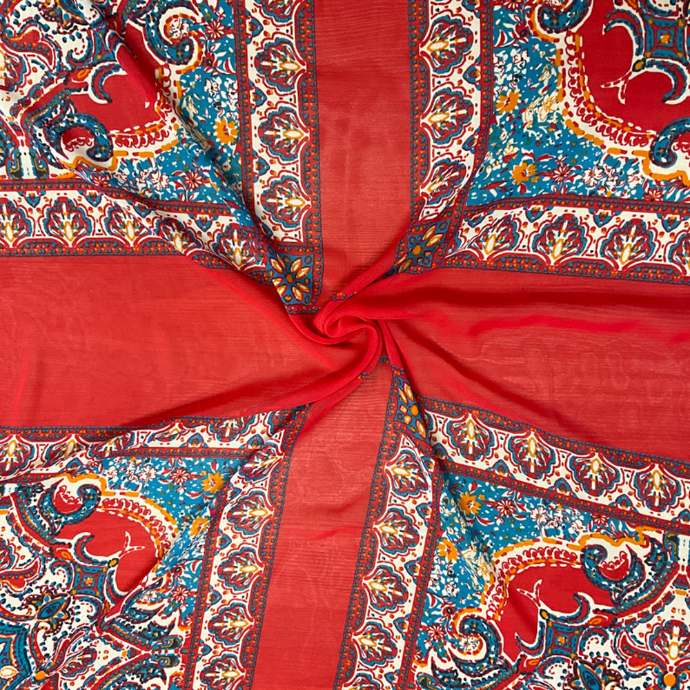 Red-Blue-Multi Poly Moroccan PANEL Border Printed Chiffon Woven Fabric