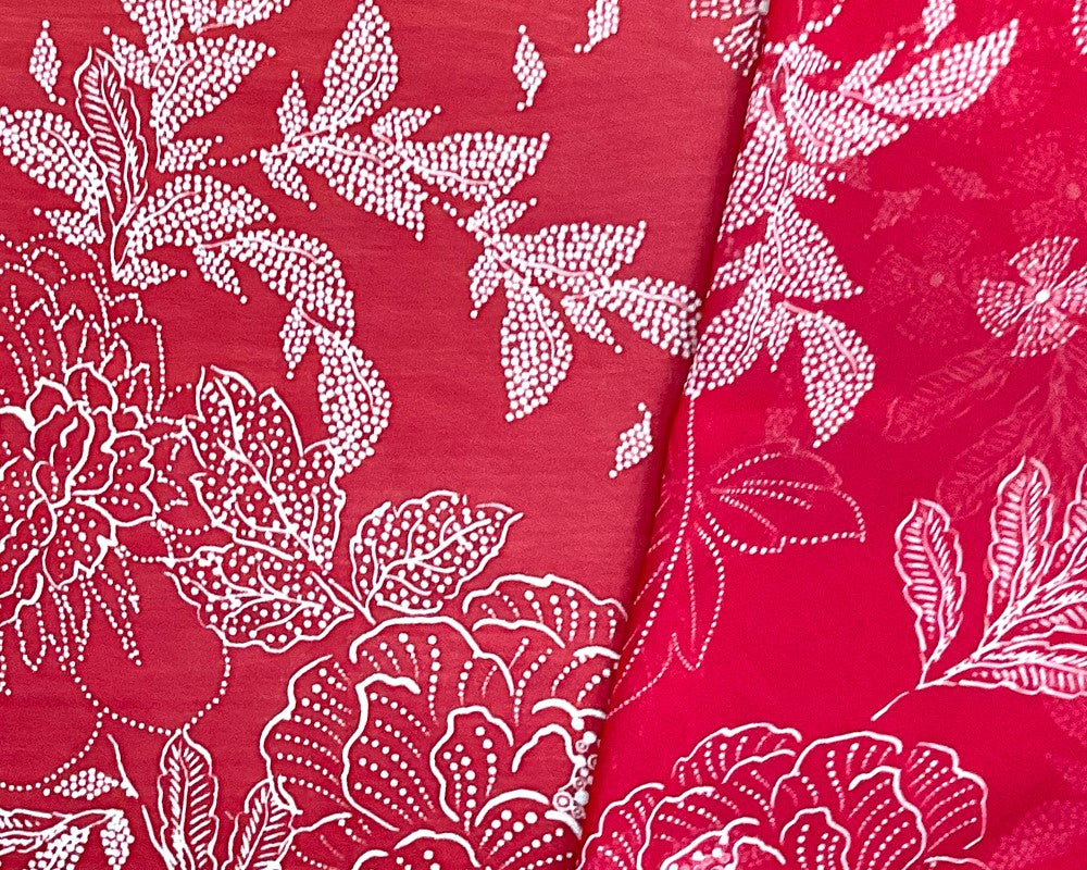 Red-White Poly Floral Printed Chiffon Woven Fabric