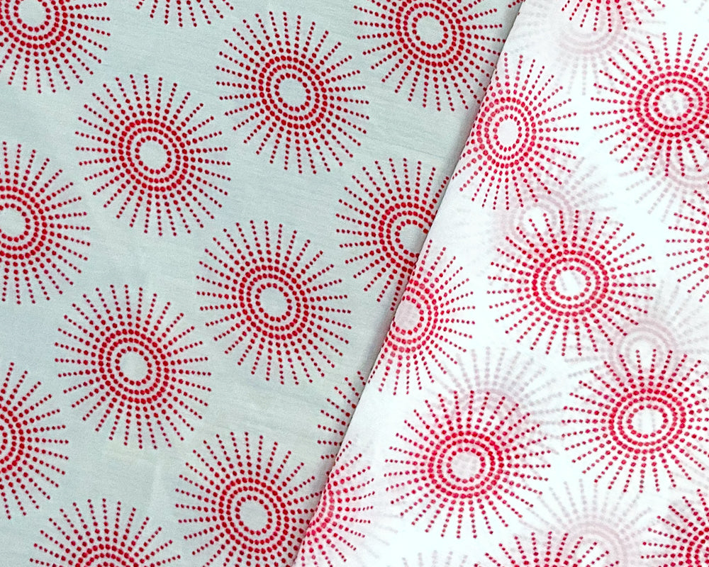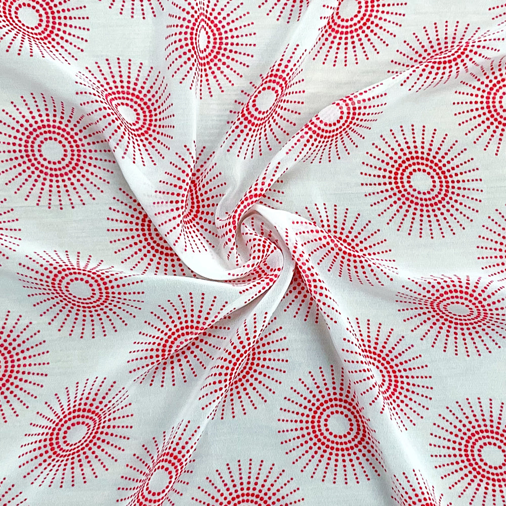 White-Red Poly Abstract Printed Chiffon Woven Fabric